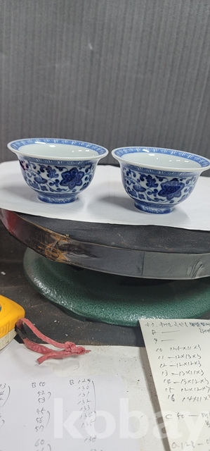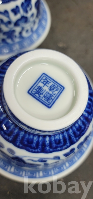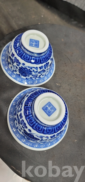 p-40.건륭년제 당초문 청화백자 찻잔2개일괄