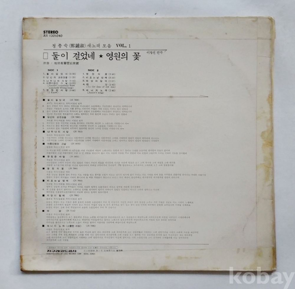 EX : 약간의 마모, 모서리 찢김 존재 음반상태