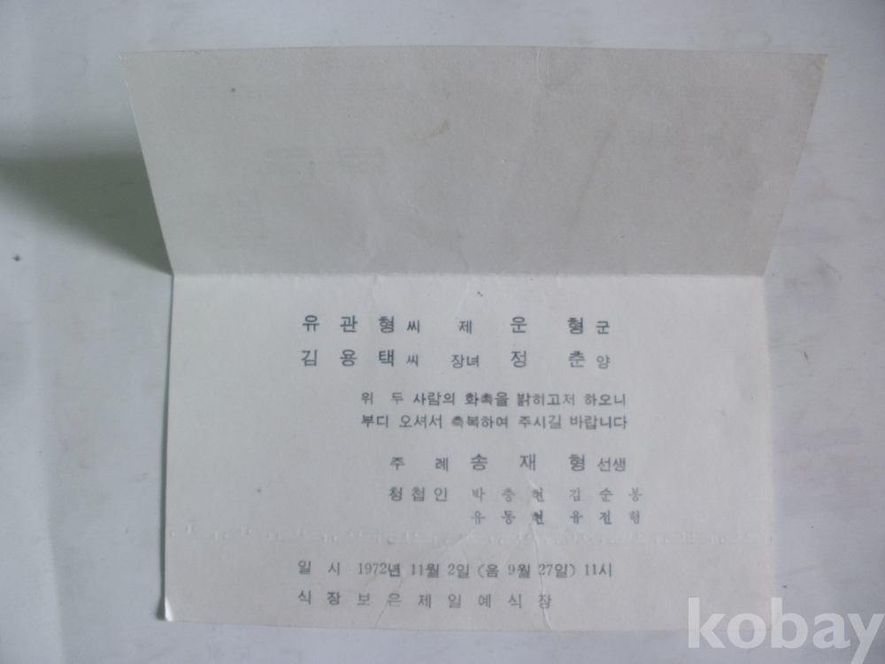 청첩 (1972년, 보은제일예식장)