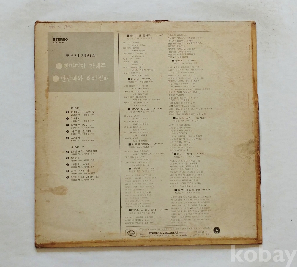 EX : 약간의 마모, 모서리 찢김 존재 음반상태