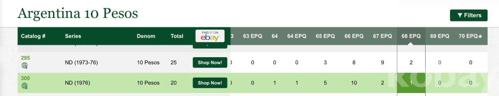 탑팝(Top of population) : 그레이딩 된 지폐중 가장 높은 등급으로 특별히 수집 가치가 더 크다.