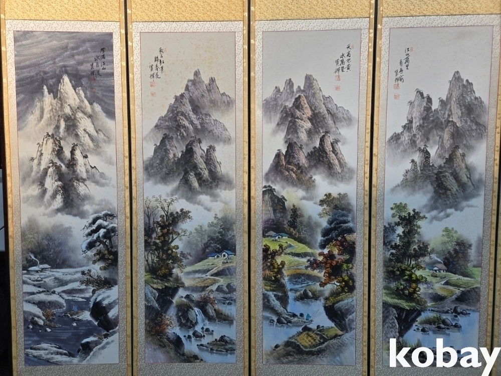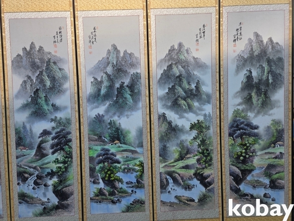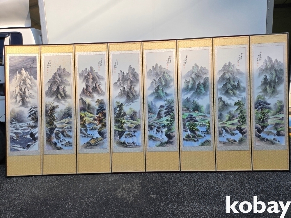 산수 풍경을 아름답게 표현한 8폭 그림 병풍 입니다.