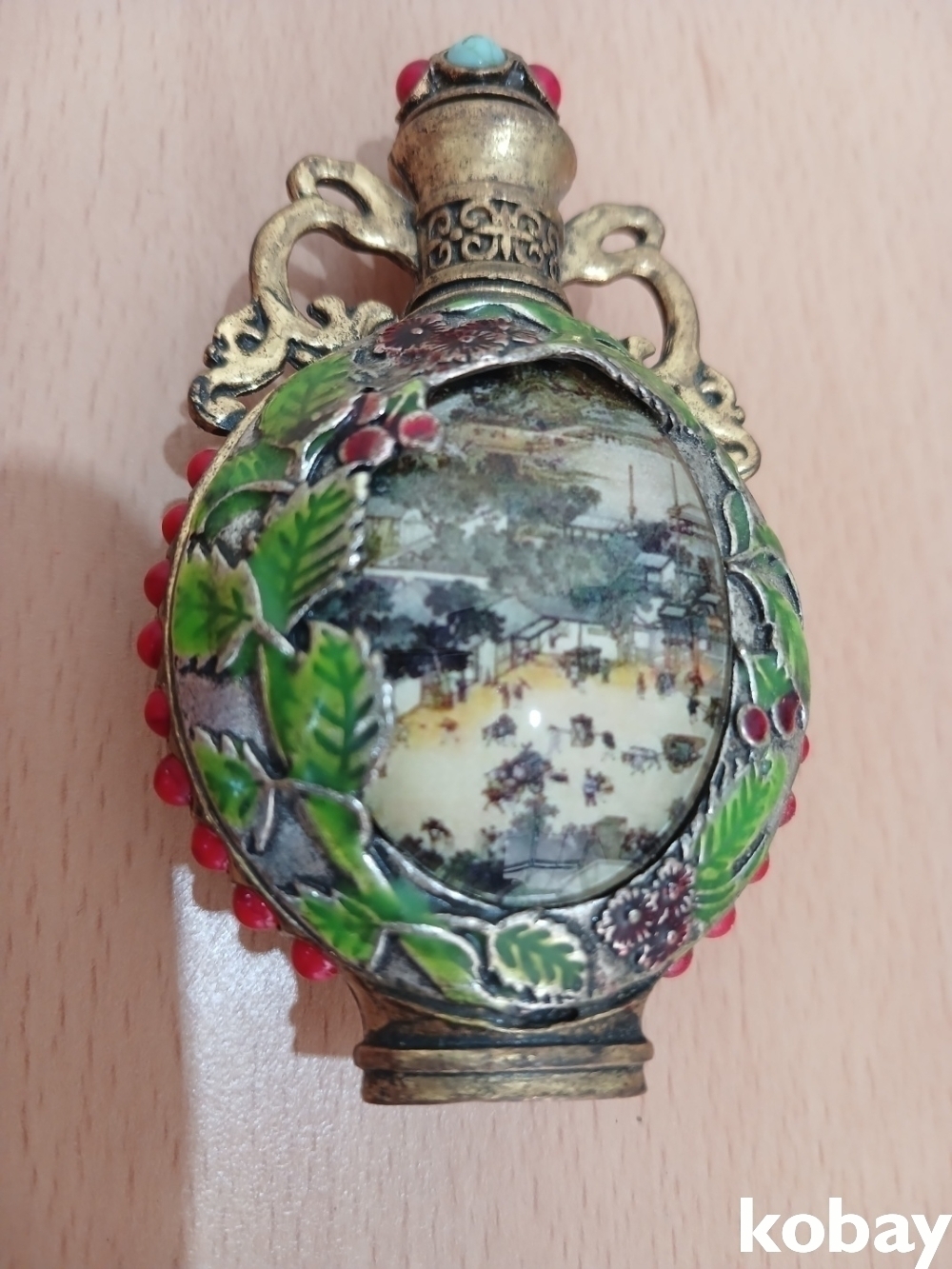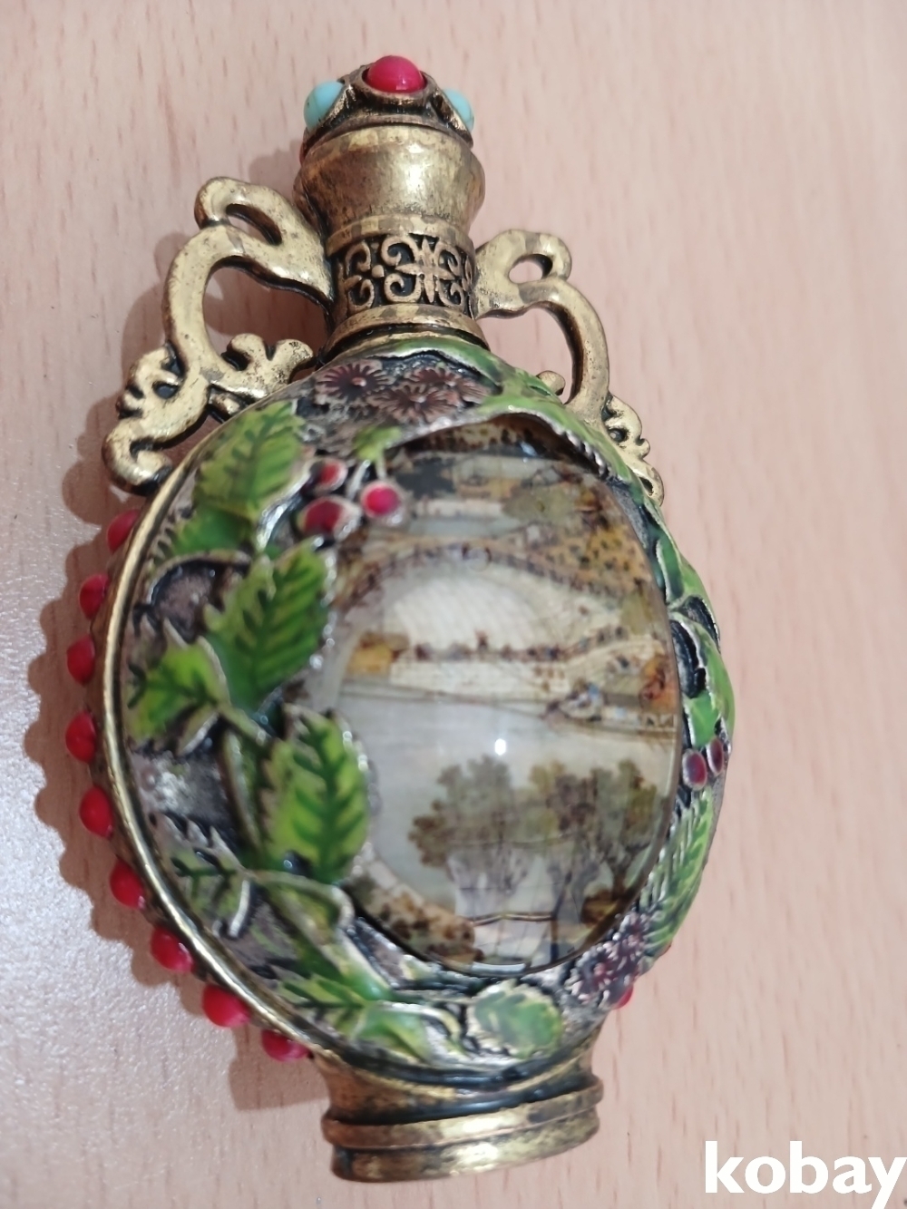 몸통은 동 칠보에 중앙 부분은 유리 재질인 듯 합니다.
