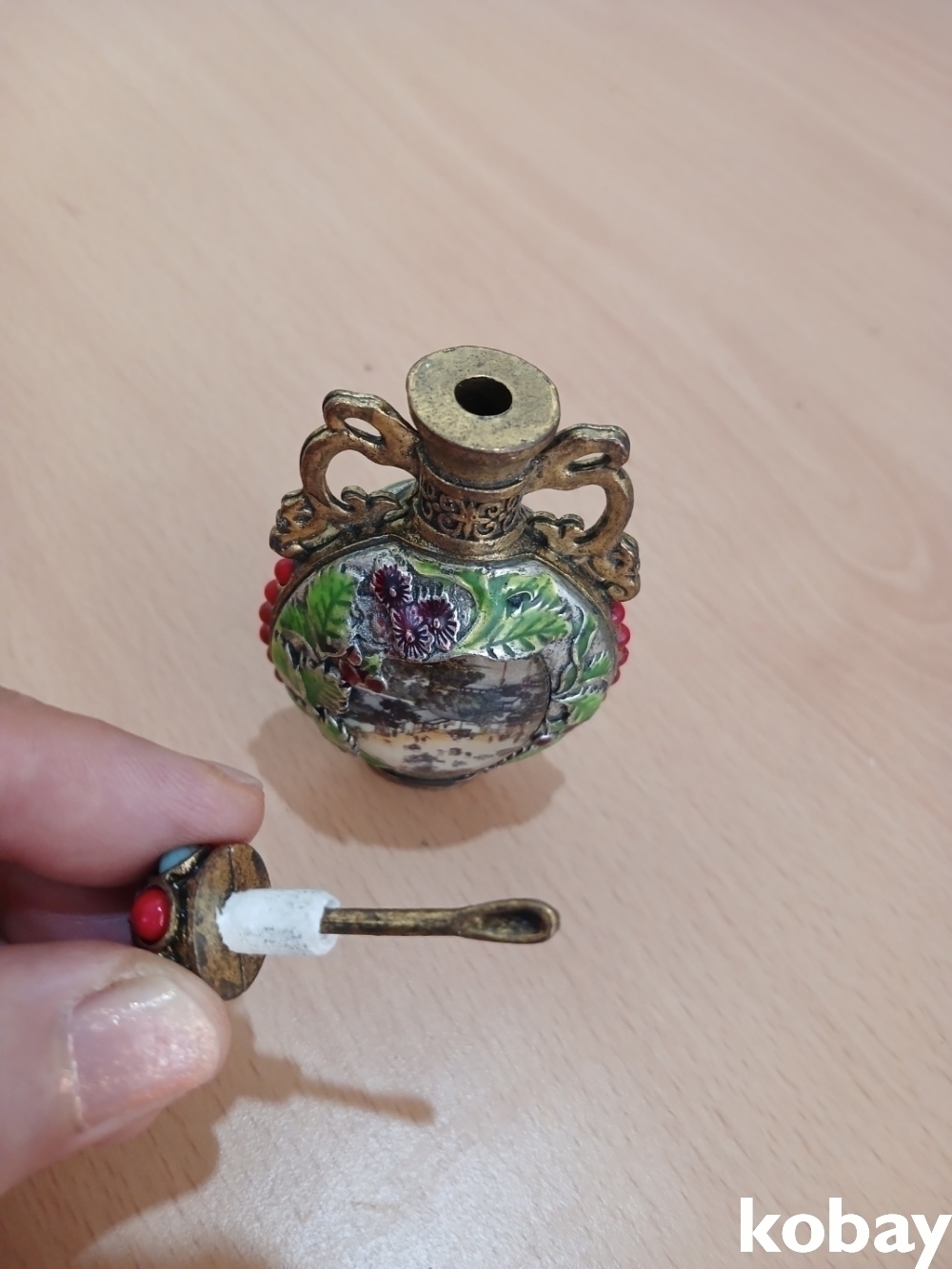 귀지개 처럼 생긴 것으로 병 안쪽에 가루를 꺼내어 사용 했습니다.