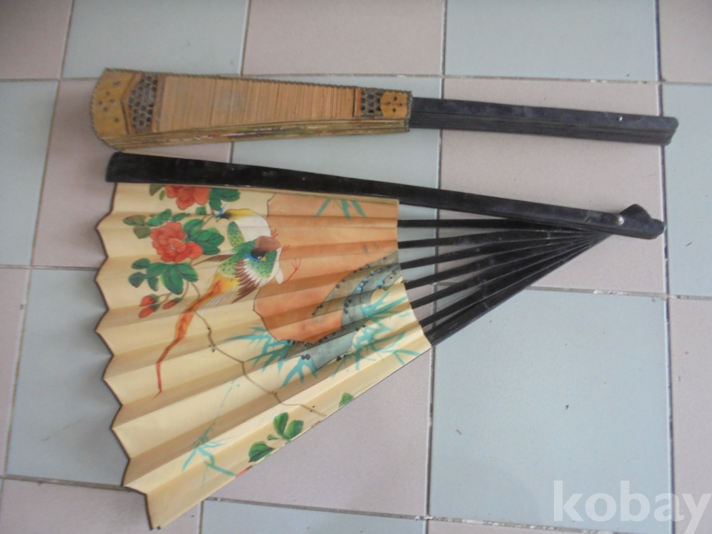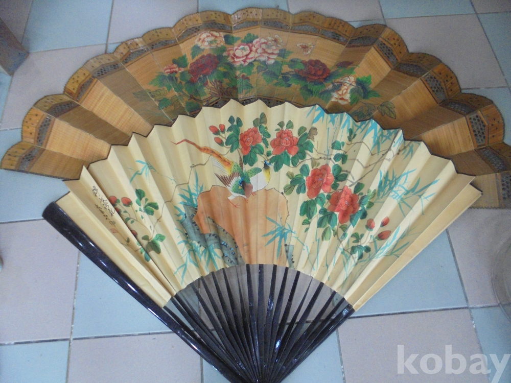 목단그림의 초대형 그림부채2점 크기 가로세로 147 x 82 cm 외사진참조