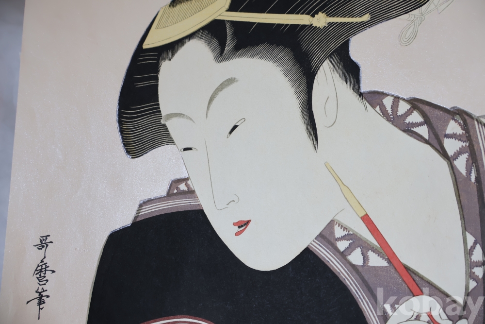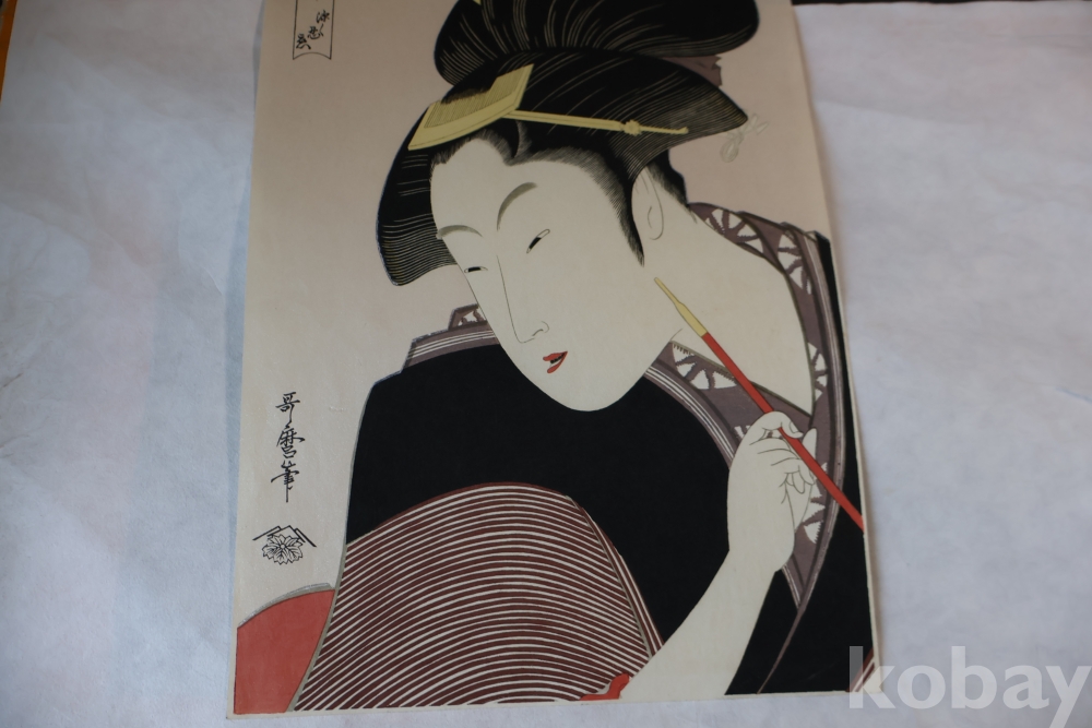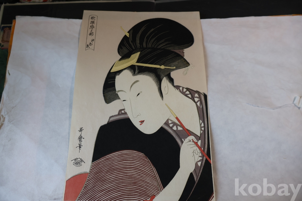 고급 우타마로 목판화 임니다 소화기에 복각된 당대의 명화 이며 아타치 판본 임니다 은마이카 처리 된 명품 명화 임니다