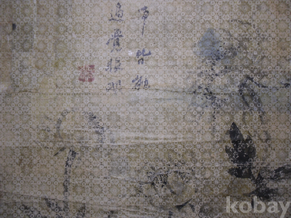특이한 종이에 그려져 있으며, 글씨도 좋습니다.