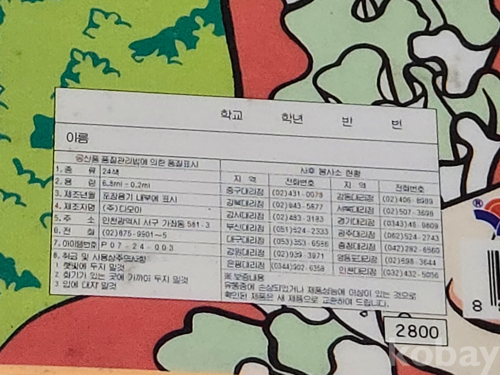 추억의 교육자료 == 빅토리 비키 다모아 24색 파스 == 미사용 파스