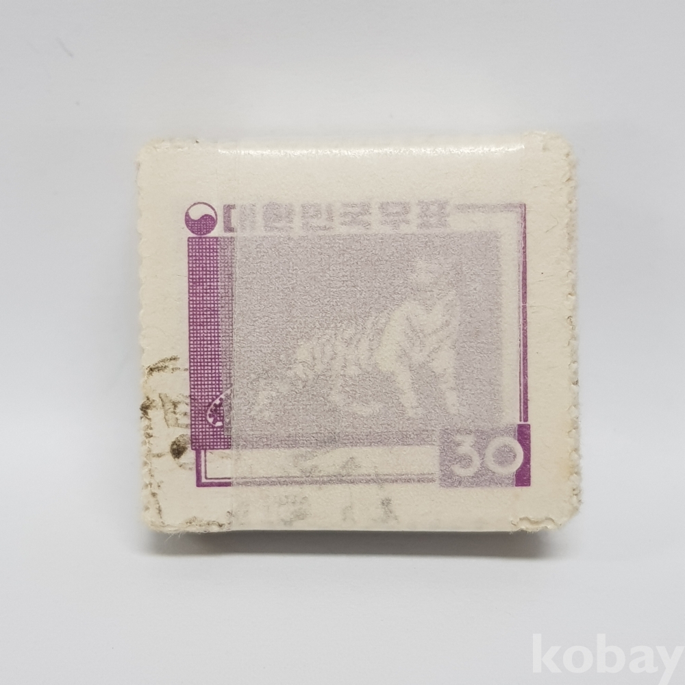- 1957년 환화 호랑이 30환 보통우표 일부인 미확인 사용제 우표 약 100매 묶음