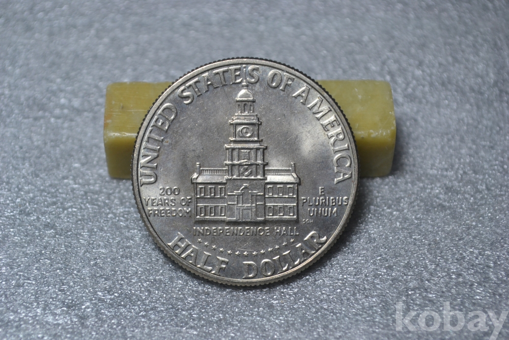 케네디 하프달러(50센트)의 뒷면 도안이 일반년도에 비해 다른형태로 디자인 되어진~ 미국독립(건국) 200주년 기념주화 케네디 하프달러(50센트) 입니다. (사진참조)