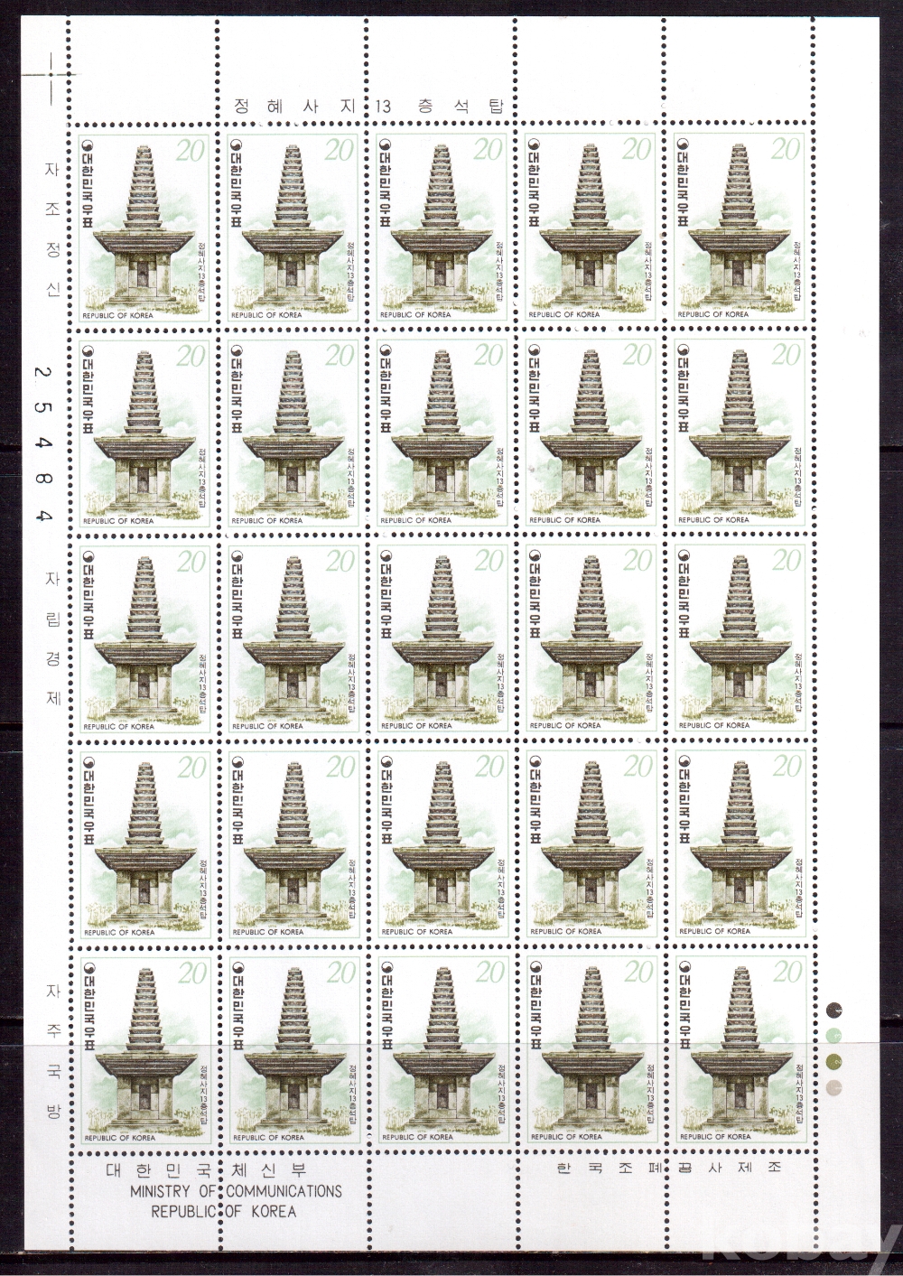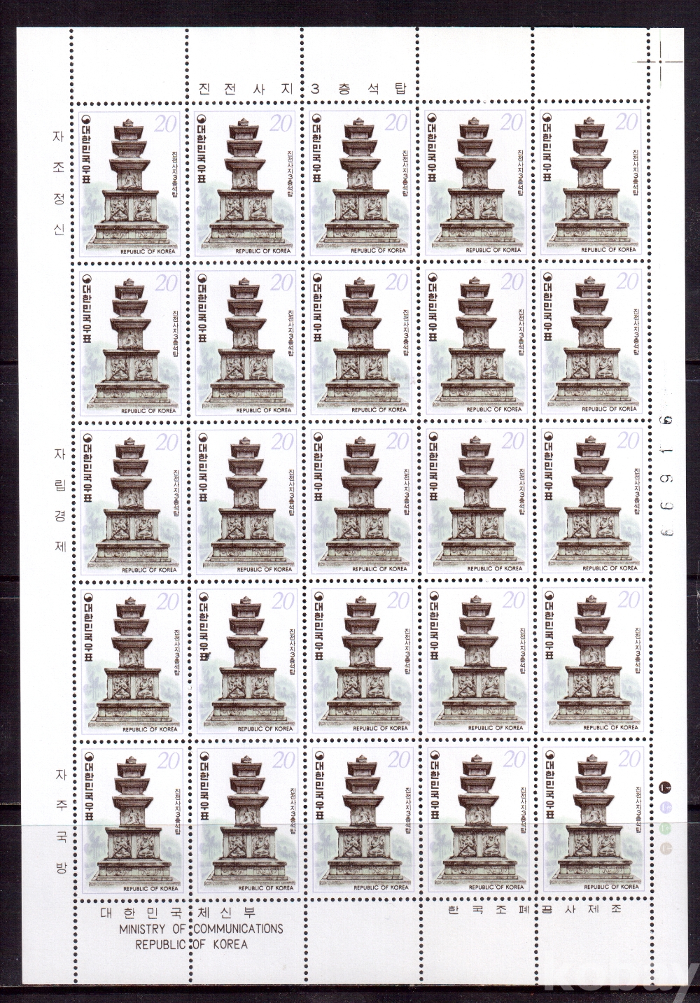 (한국전지) 1978.11.20 석탑사라즈(제5집) 2완 sheet of 25 MNH