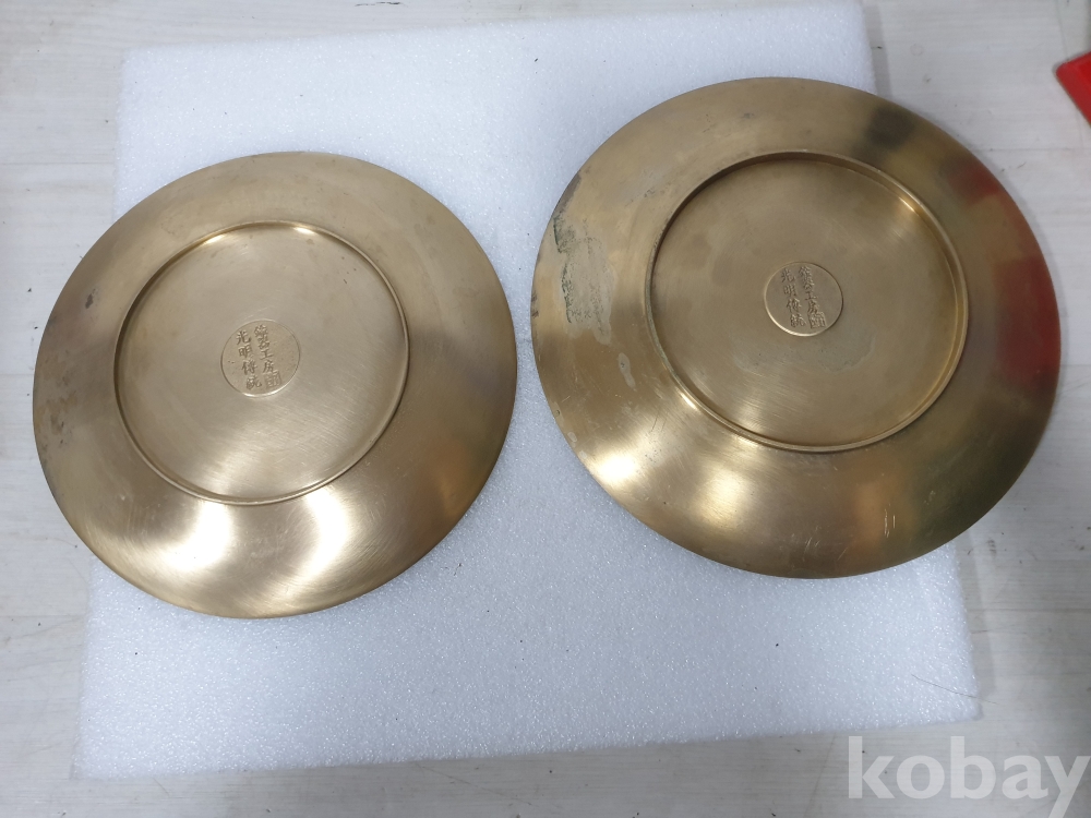 {천원경매} Y-4-1397 유기 접시 2개 (22cm, 24cm)