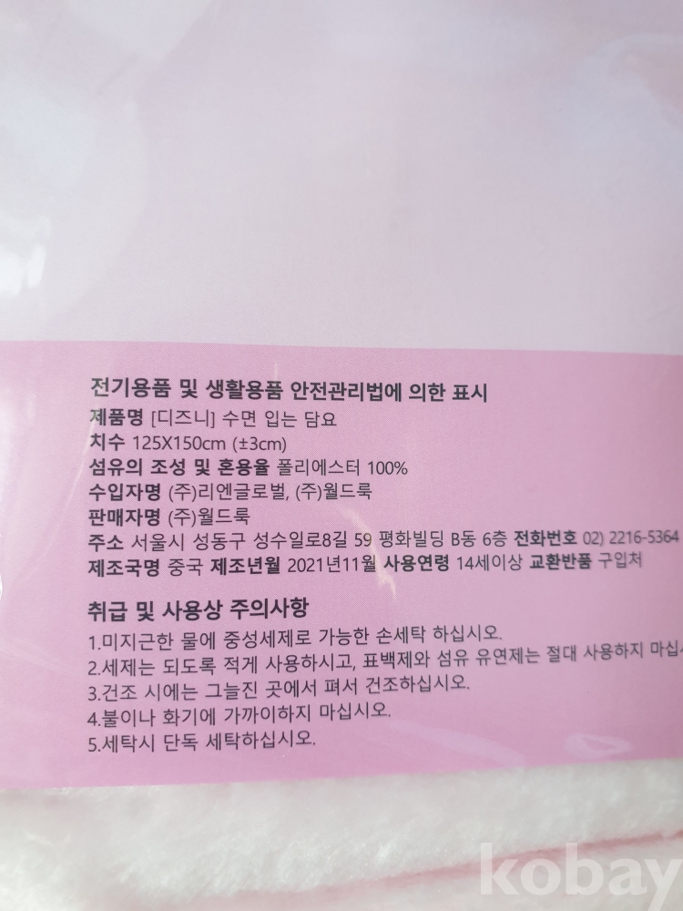 [천원경매] 4-199 미니마우스 핑크컬러 수면 입는 담요(미개봉제품, 125*150cm)