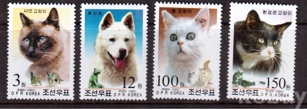 (동물) 북한 2002.10.20 개와 고양이 4완 MNH
