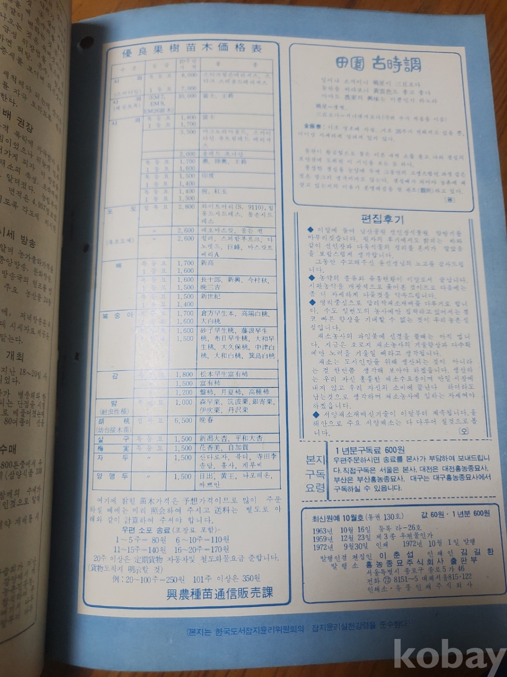 1. 월간 최신원예 통권 130호, 흥농종묘주식회사, 1972년, 56쪽, 상태 상, 사진 참조