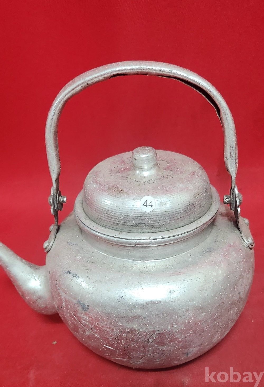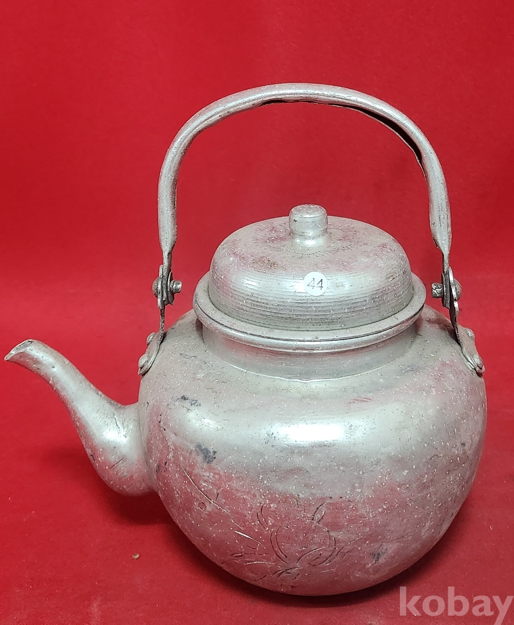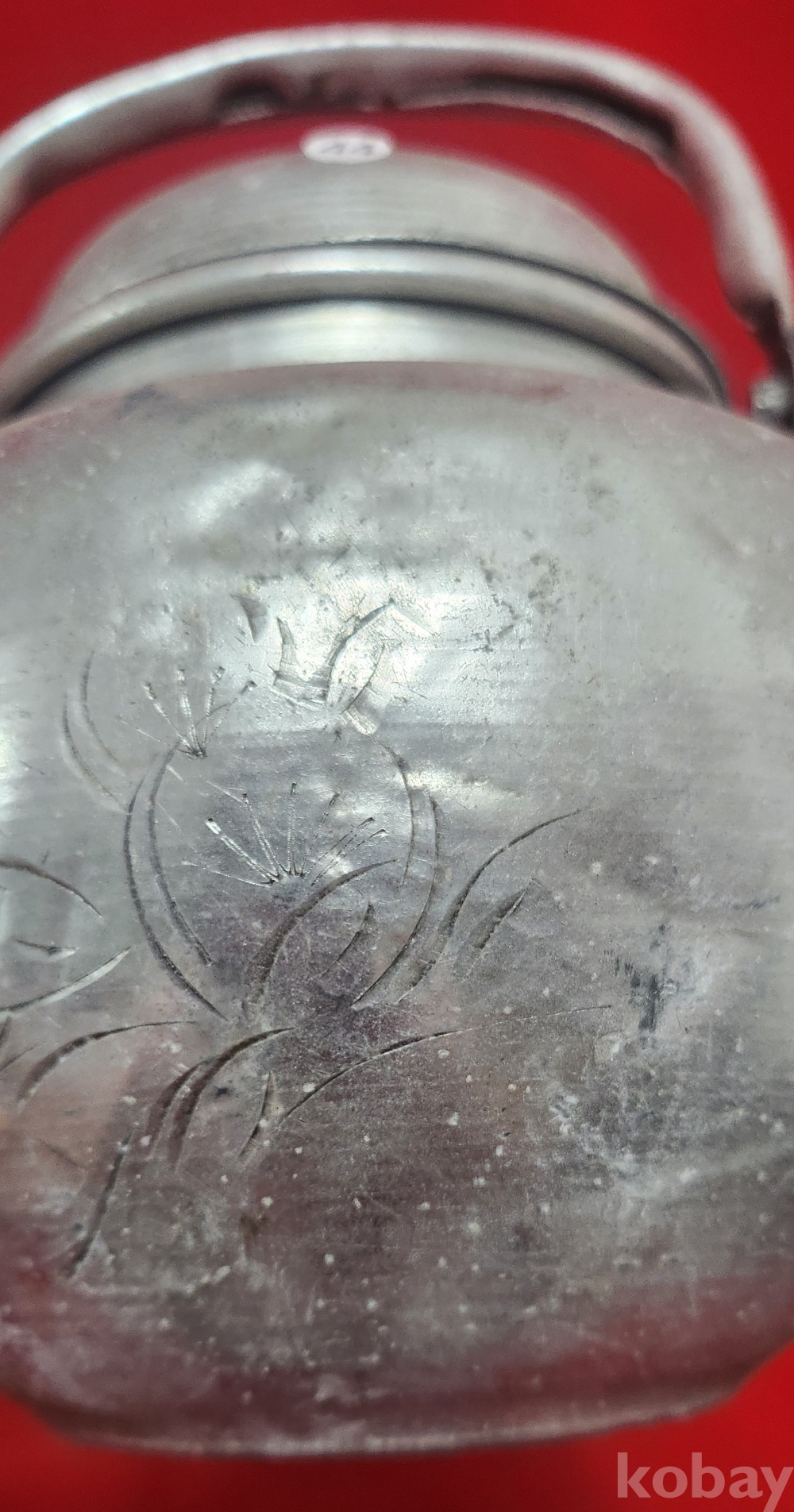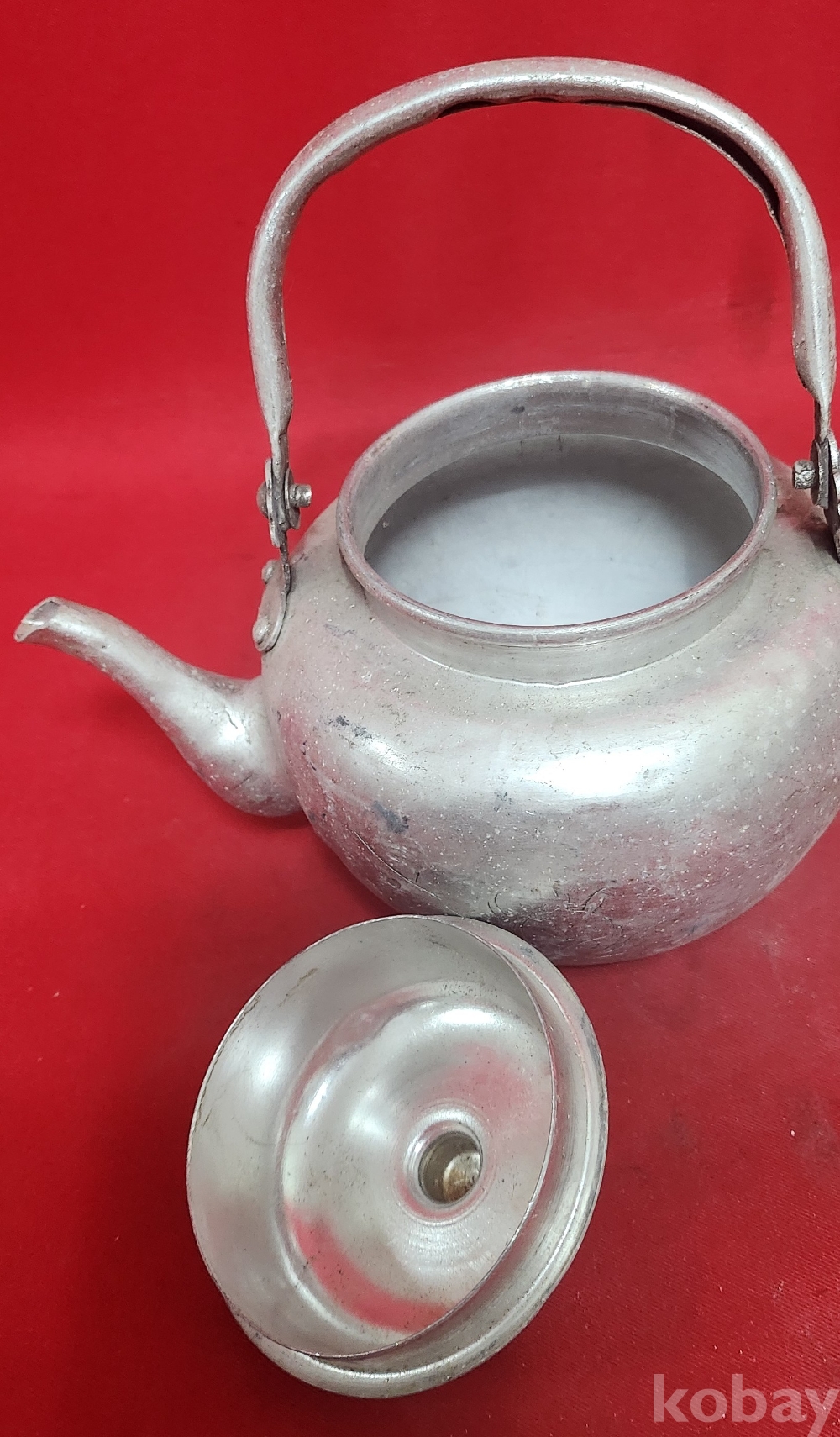 상당한 연대 보이는 알루미늄 제질에 배나무 꽃 문양 주전자입니다,
