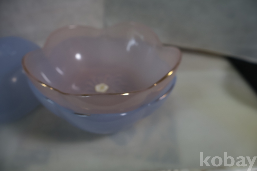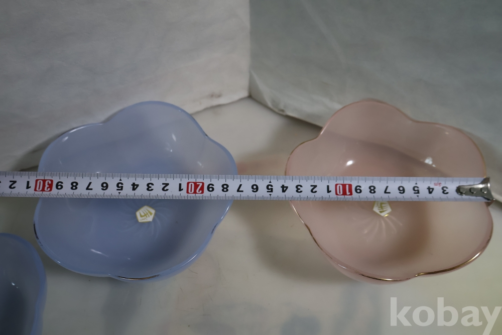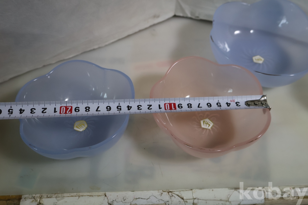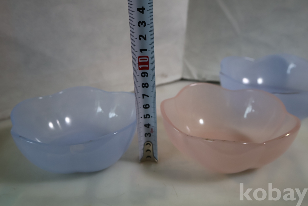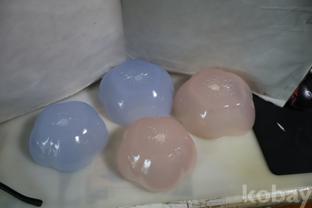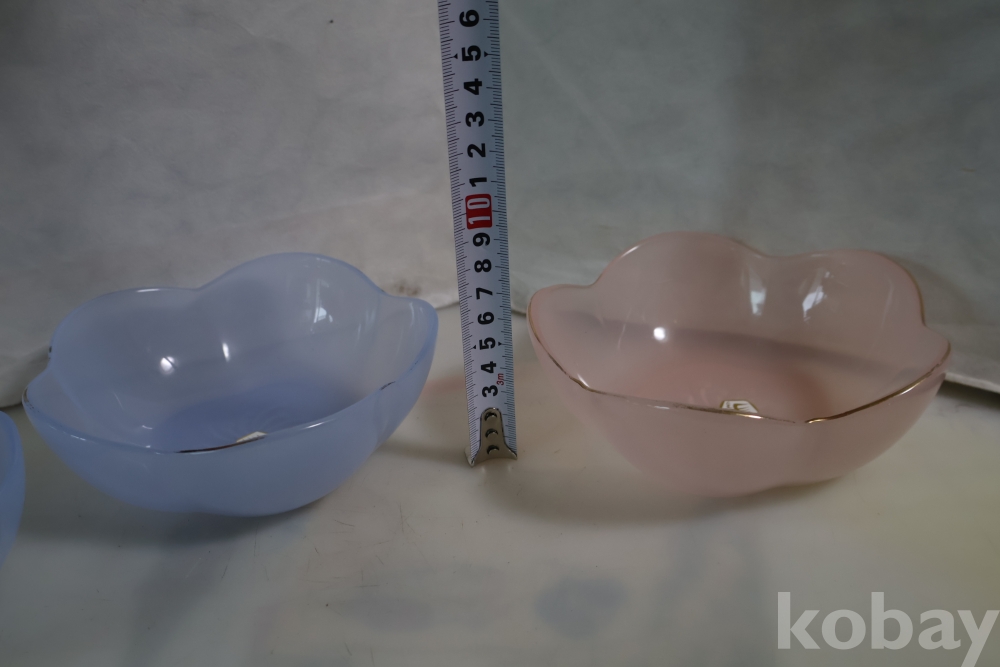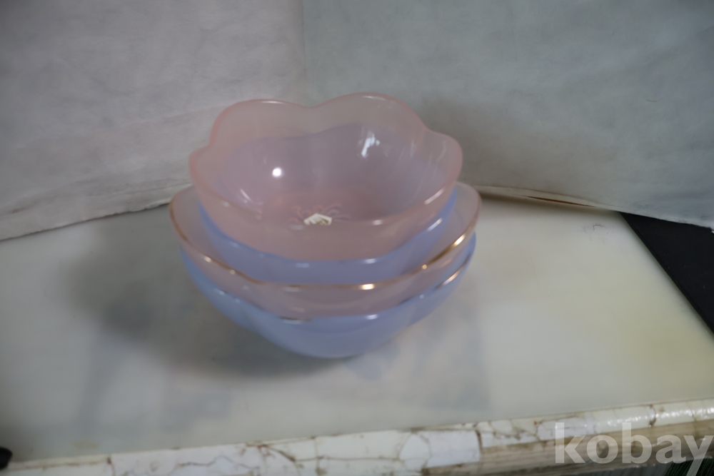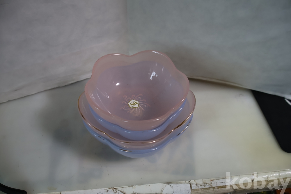 묘한 색감의 아름다운 유리그릇 4 세트 이며 손으로 만든 테추구리 레벨이 보이는 미사용 멋진그릇 임니다