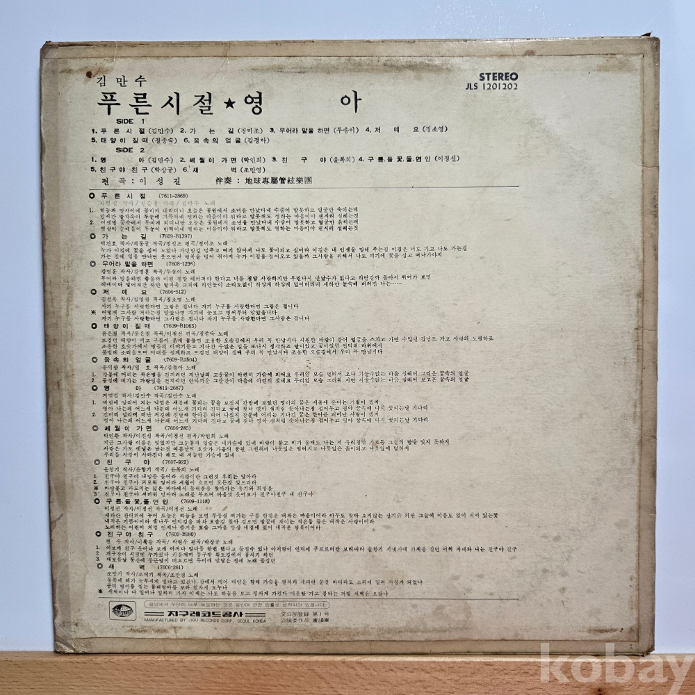 | 자켓상태 | VG : 주름, 접힘, 모서리 찢김 다수 | 음반상태 | EX : 재생에 영향 없는 가벼운 기스 존재 | 발매정보 | 초반 | 가사지여부 | 무 |