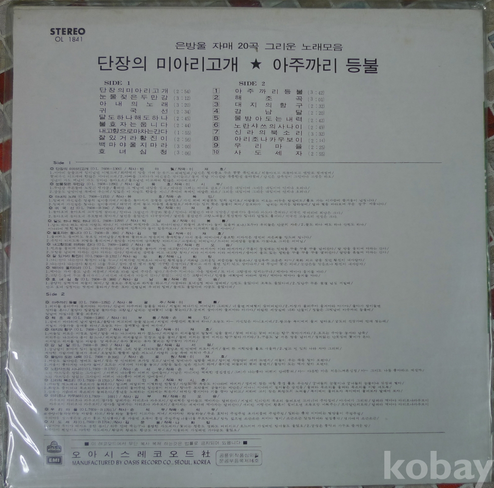 가수 은방울 자매 20곡 그리운 노래 모음 음반 LP