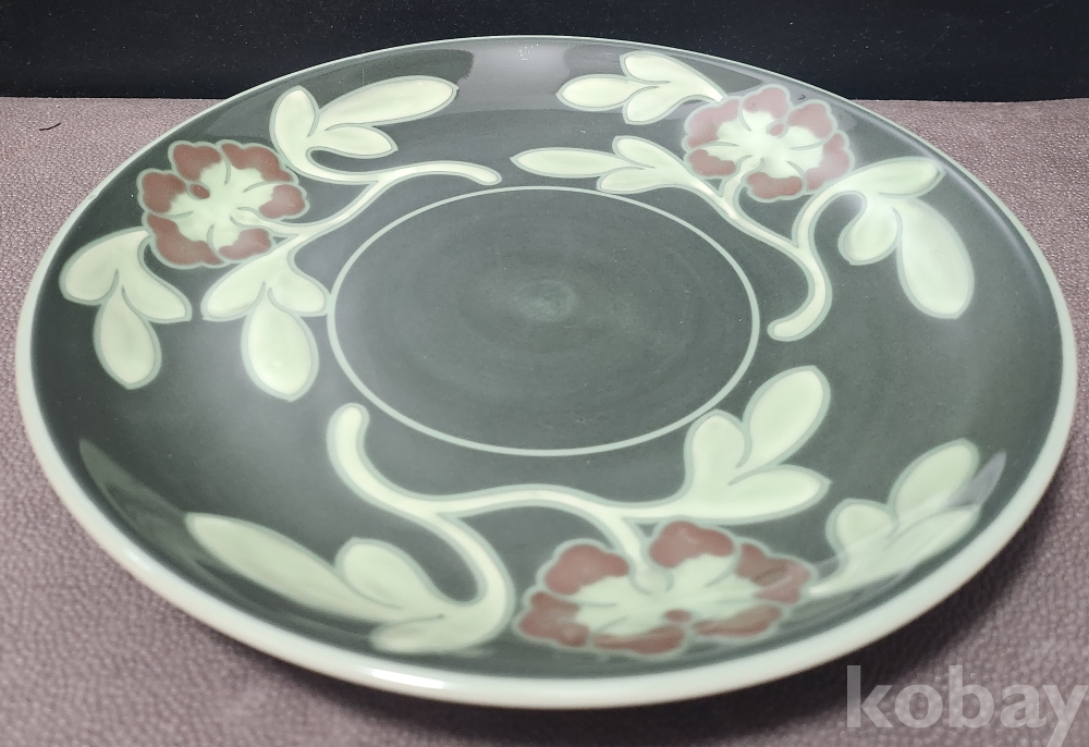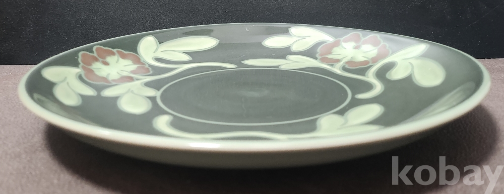 광주요 [廣州窯] 청자진사목부용문접시 靑磁辰砂木芙蓉文楪匙