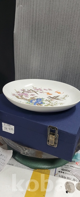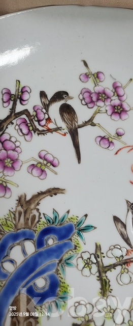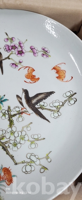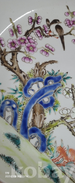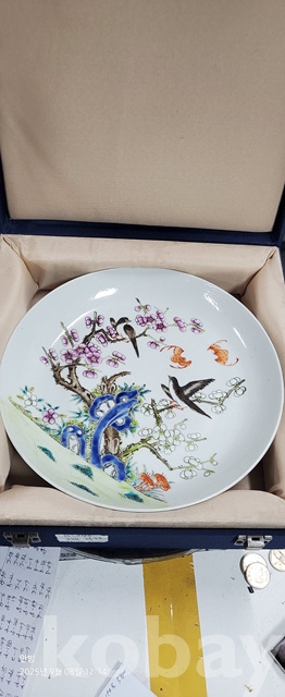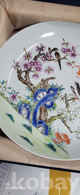 b-146.고급상자에에담긴 수작업으로만든오래된화조도 오채큰접시