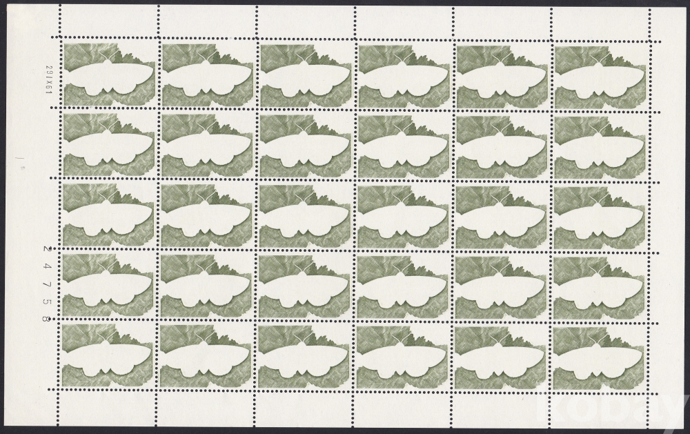 (하늘천) 스위스 1961년 나비, 곤충, 그린 컬러 테스트 트라이얼 프린트 프루프 전지