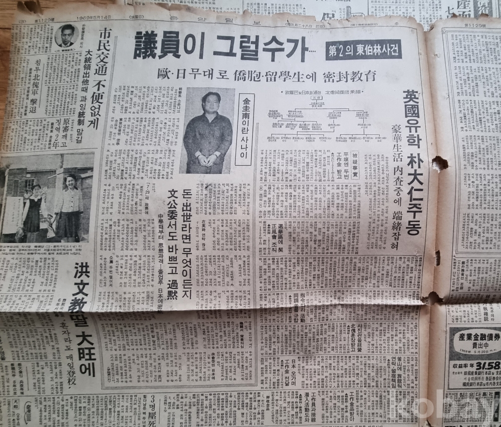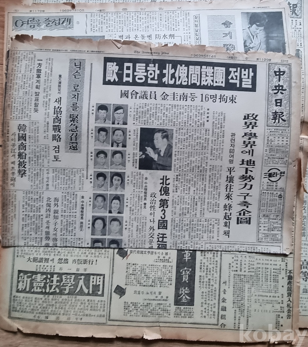 '유럽과 일본을 통한 북괴 간첩단 적발' 기사가 대대적으로 보도되었습니다.