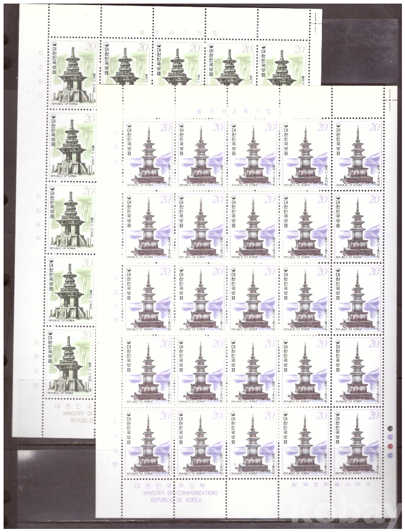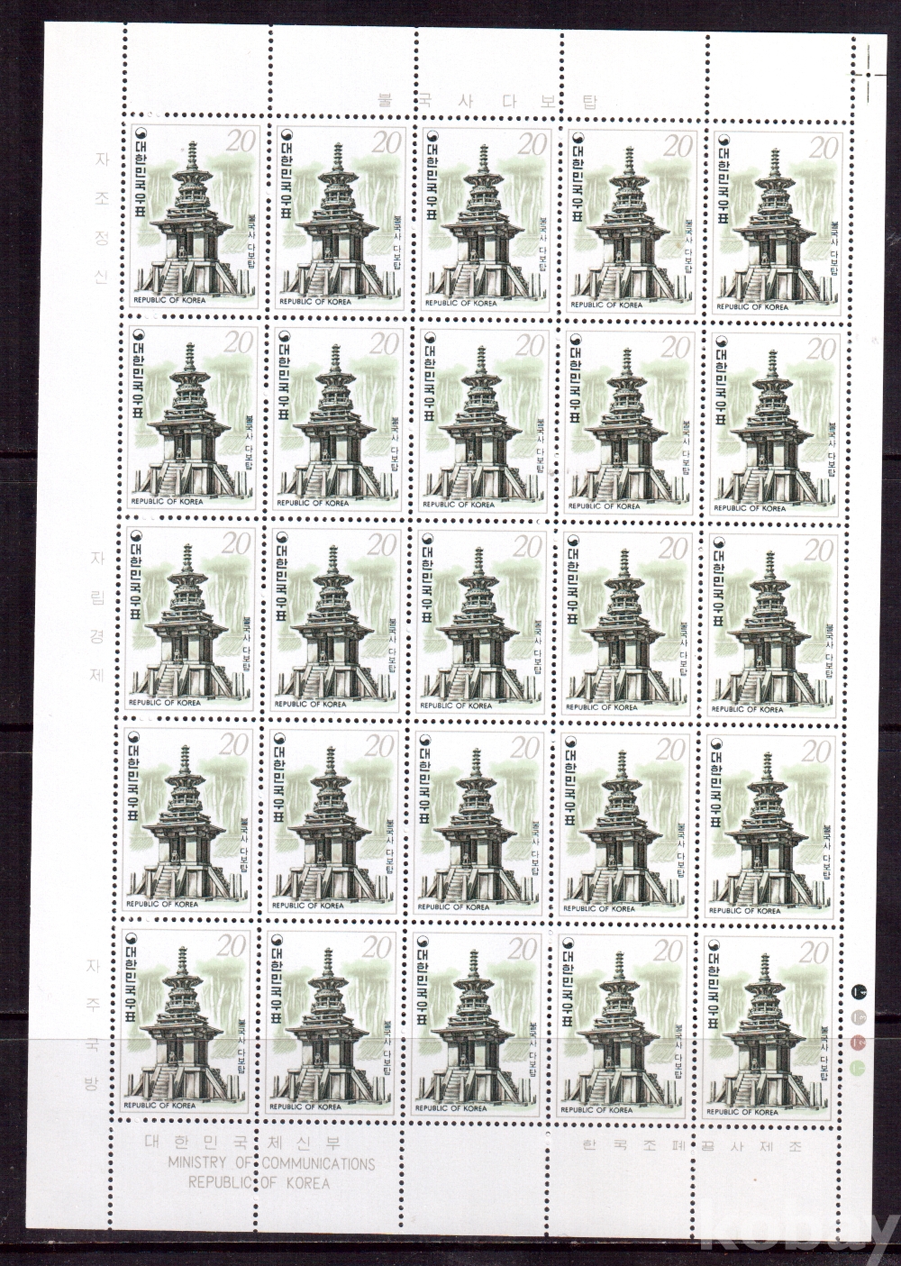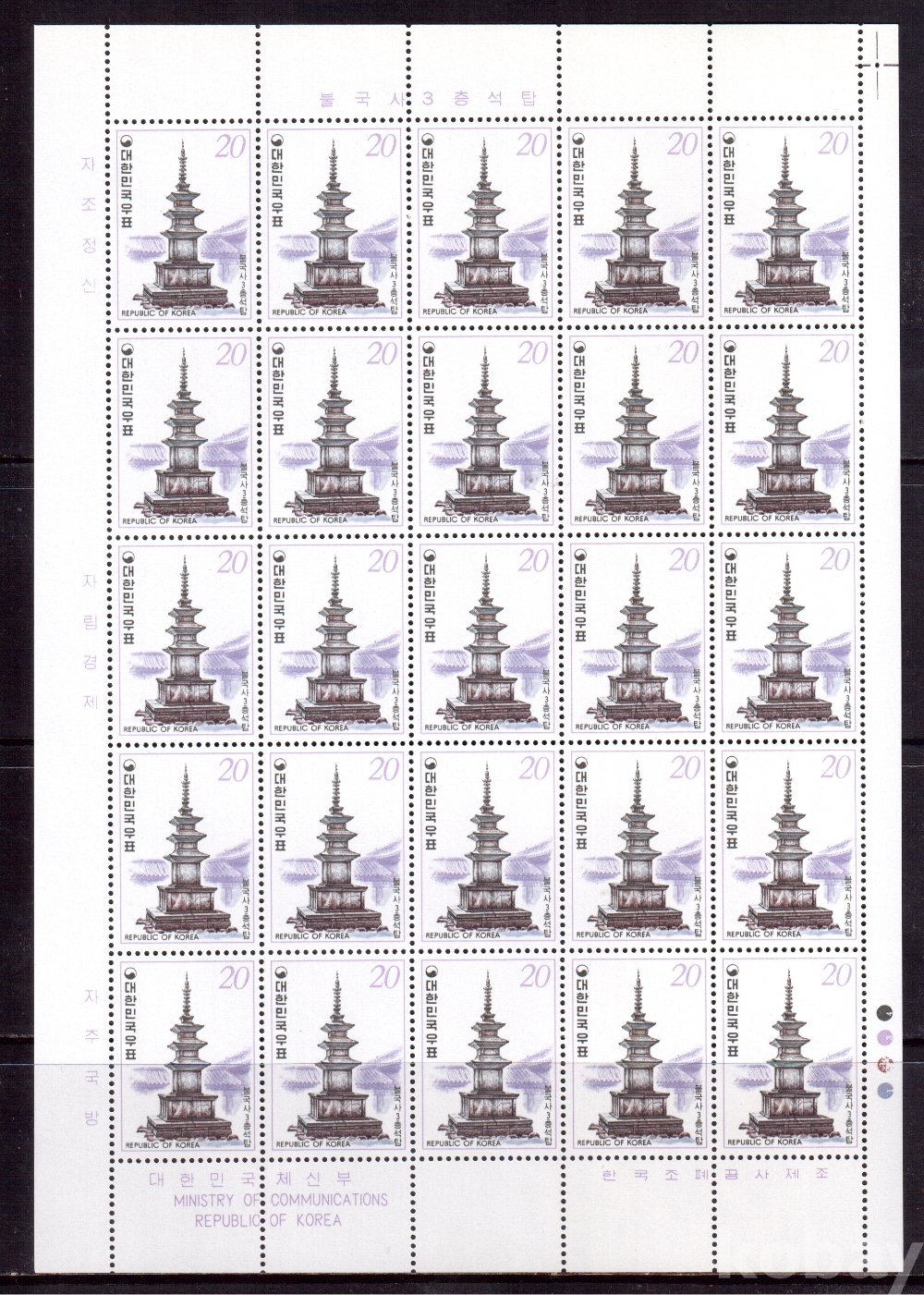 (한국전지) 1978.6.20 석탑시리즈(제3집) 2완 sheet of 25 MNH