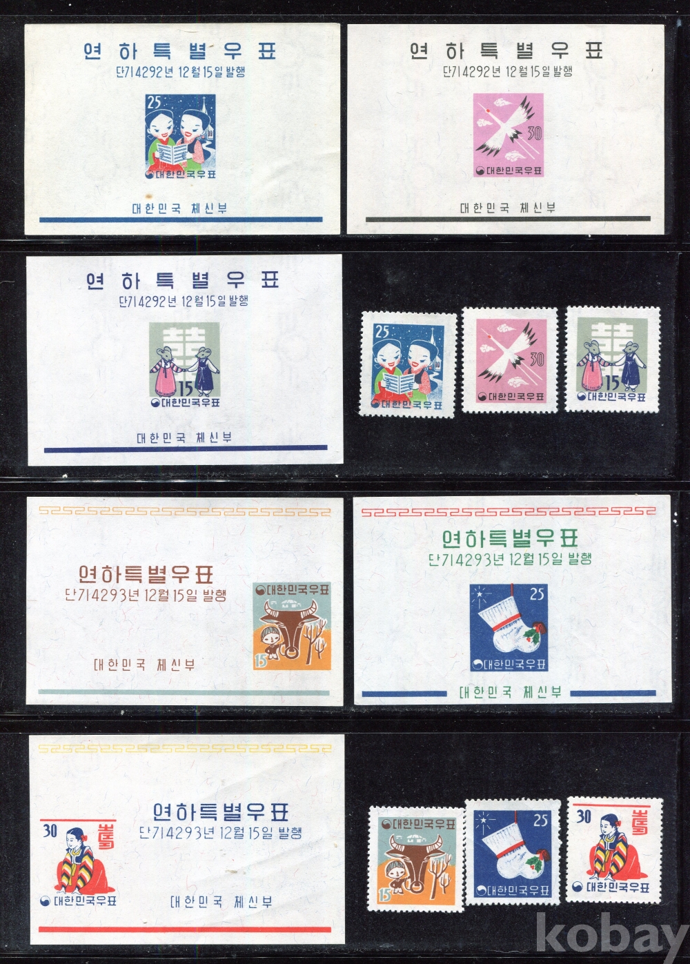 - [시트/우표] 1959-60년 3차 및 4차 연하시트 및 우표모음 (All MNH : Mint Not Hinged : 뒷면 힌지자국없이 깨끗한 상태)