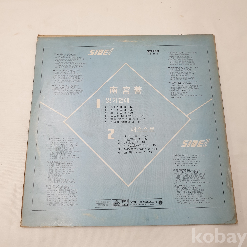 | 자켓상태 | EX : 약간의 마모, 모서리 찢김 존재 | 음반상태 | EX : 재생에 영향 없는 가벼운 기스 존재 | 발매정보 | 알수없음 | 가사지여부 | 무 |