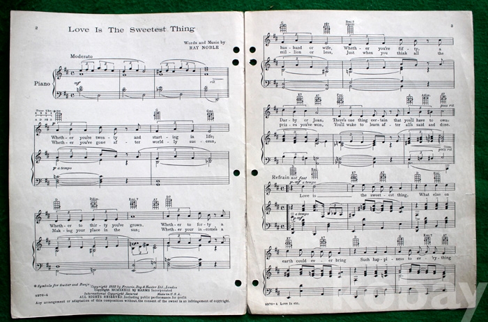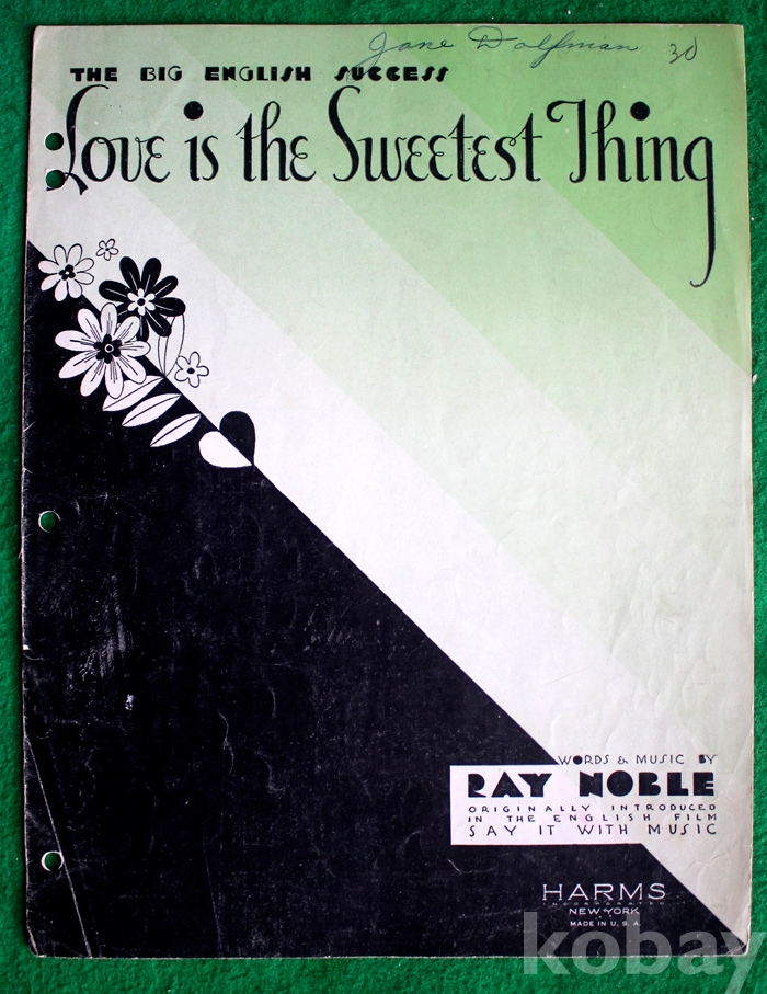 (오래된 피아노 악보) Love is the sweetest thing - 1932년. 미국발행...