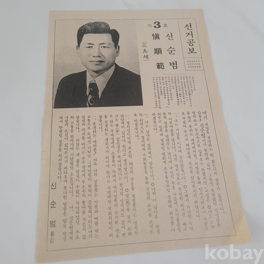 선거공보 /60-70년대 /서순범 무소속/전라남도 제3선거구선관리위원회발행