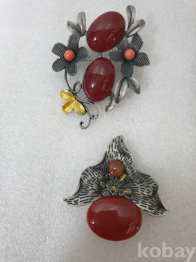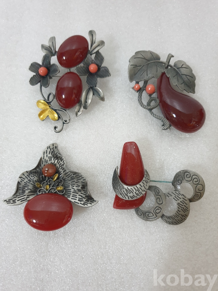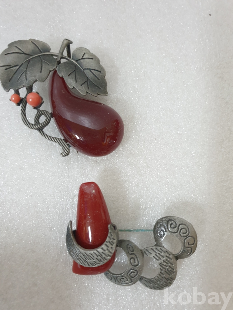 {천원경매} 4-2165 엔틱 자주 원석 브로치 4개