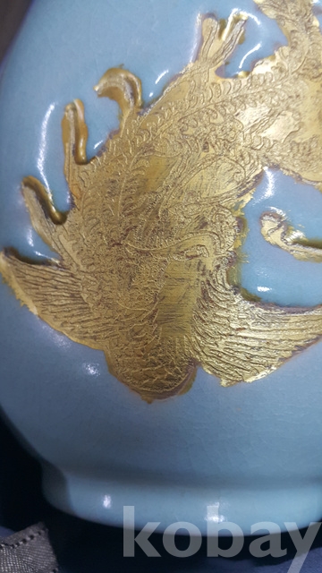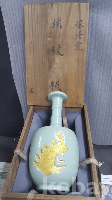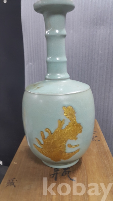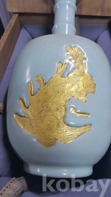 g-65.고급오동상자에담긴 오래된 금칠공작문주병