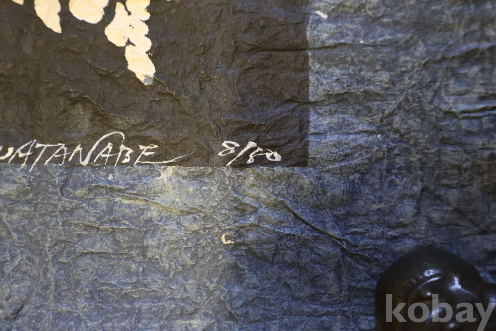 세계적인 성화화가 오타나베의 명화 임니다 제작년도 에디션 넘버 사인을 가진 명화 임니다 Sadao Watanabe was a Japanese artist best known for his prints that meld biblical imagery with the traditional Japanese folk art known as mingei. Watanabe's work portrays the Christian gospel with a distinctive use of crumpled wet paper mixed with mineral pigments suspended in soy milk, known as katazome. “I would most like to see them hanging where people ordinarily gather,” the artist said of his work. “Because Jesus brought the gospel for the people.” Born on July 7, 1913 in Tokyo, Japan, his parents died when he was 10. Now an orphan, Watanabe was invited to church by a neighbor, an event that changed the course of his life. During his adolescence, he worked as an apprentice in a fabric dyeing shop under the renowned textile artist Keisuke Serizawa. Today, the artist’s work has been internationally recognized, with his works in the collections of The Museum of Modern Art in New York, the Art Institute of Chicago, and the National Museum of Art in Tokyo. The artist died on January 8, 1996 in