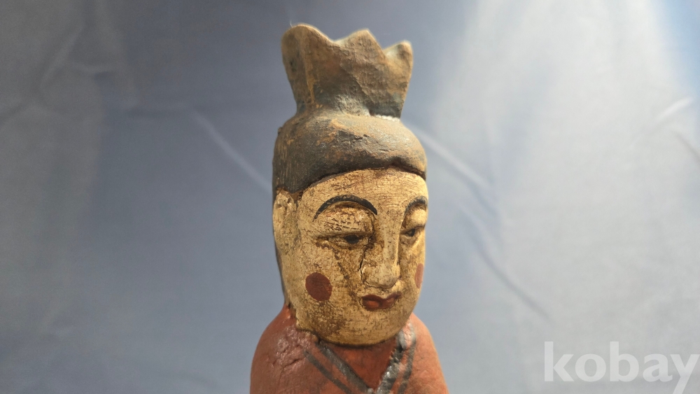 나무조각 위에 색이 칠해져 있으며, 더러 벗겨진 부분들도 보입니다.
