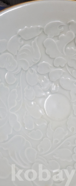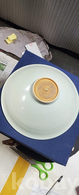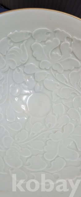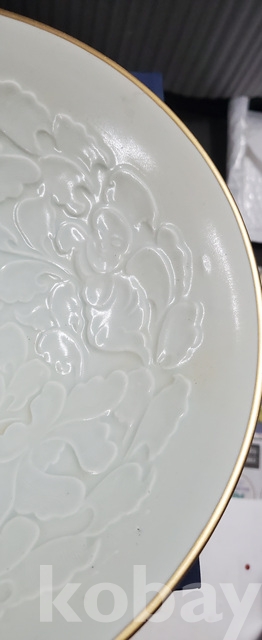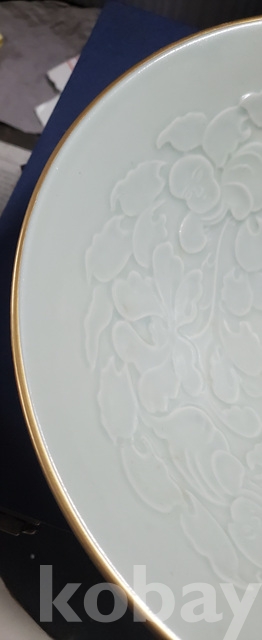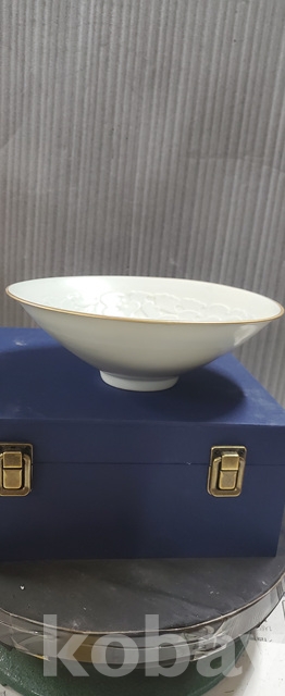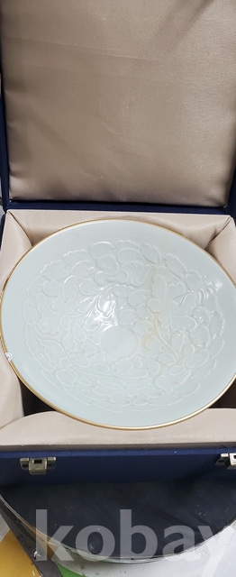 b-81.고급박스에담긴 오래된 금테둘이가있는 송연청자목단문 대접시