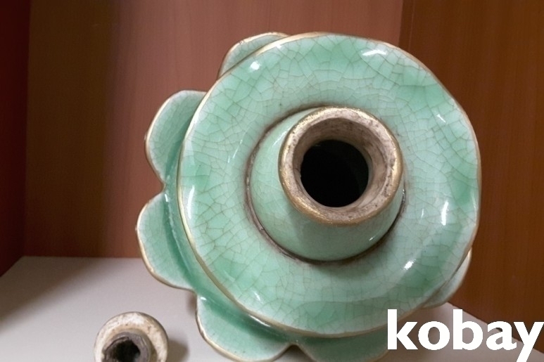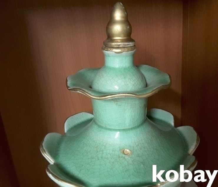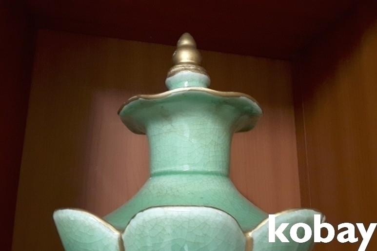 연꽃 모양을 하고 있는 청자 도자기 입니다.