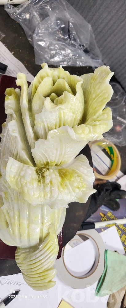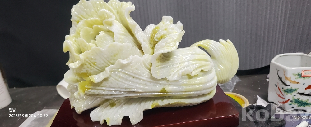 g-19.(대)천연자연석 옥으로깍아만든 배추문양옥장식품