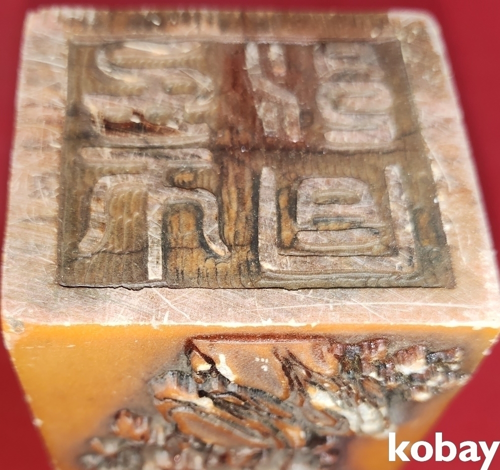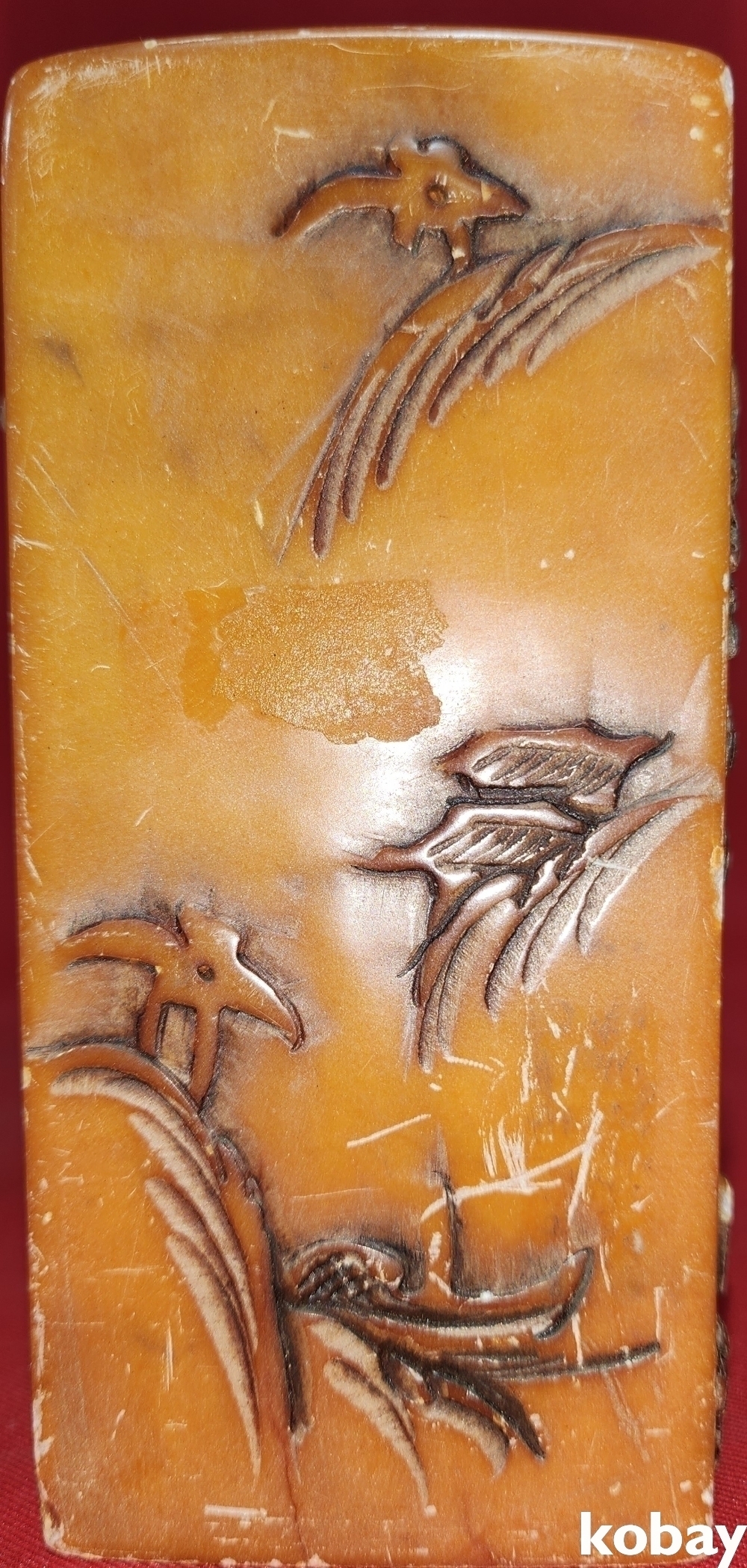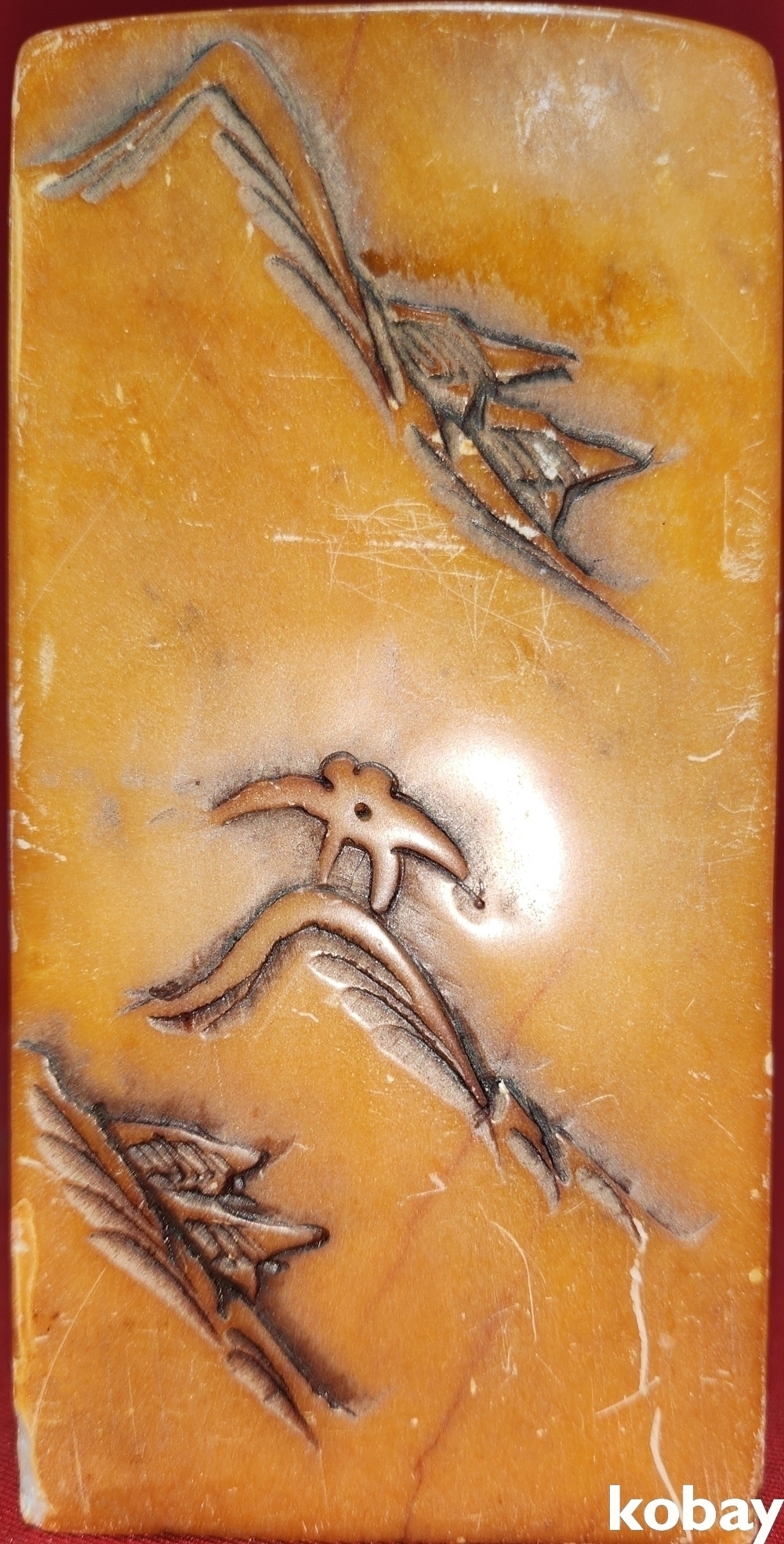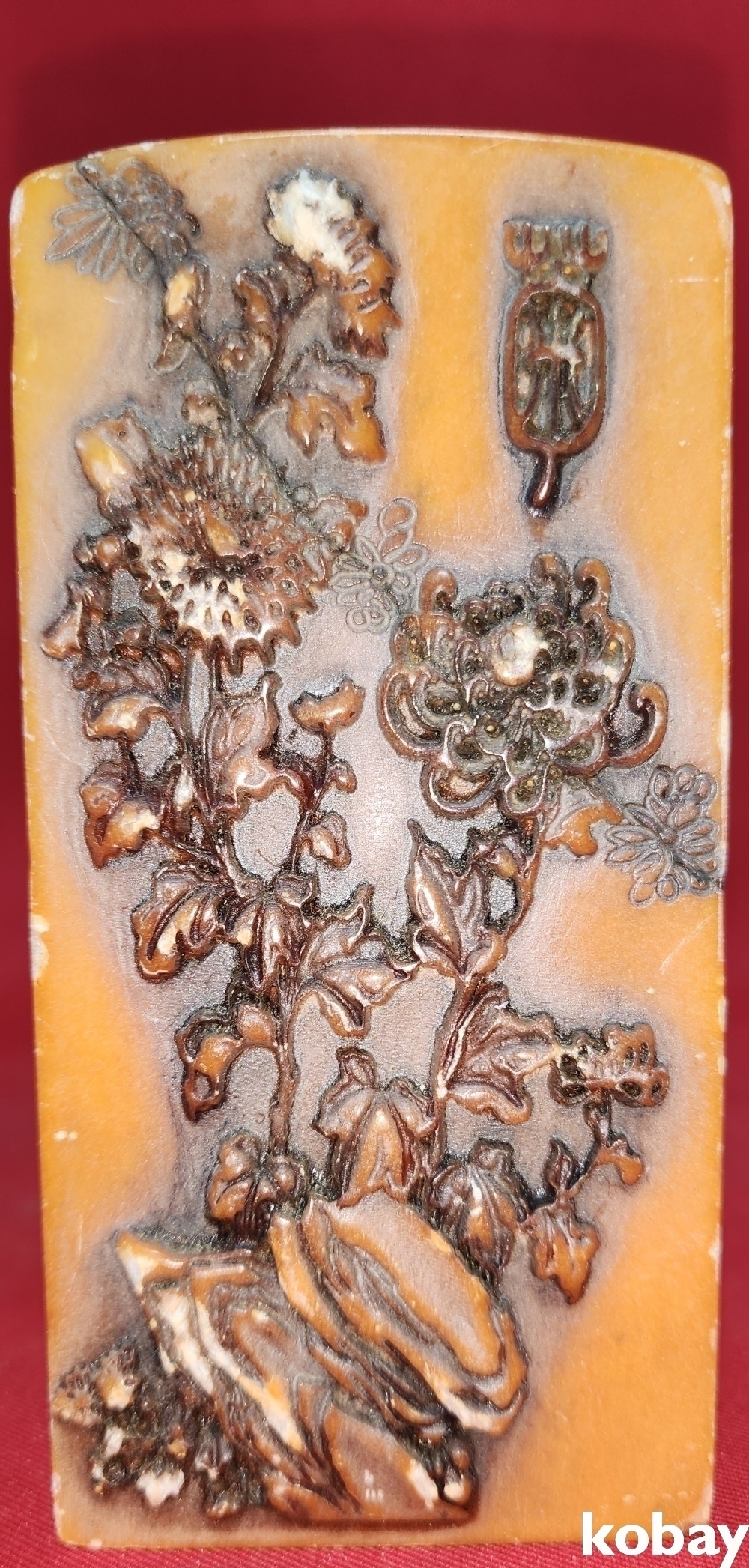 옥석(玉石)에 국화꽃 문양 사각 도장입니다,