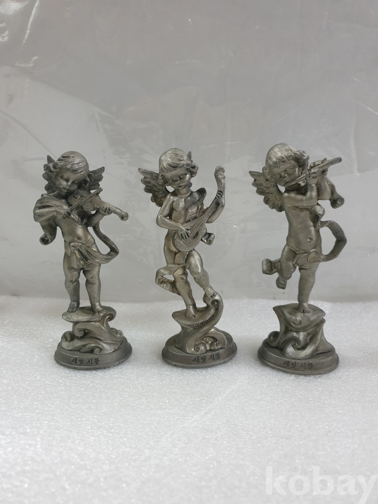 {천원경매}4-2116 주석 연주하는 천사 3인 장식품 (12cm)
