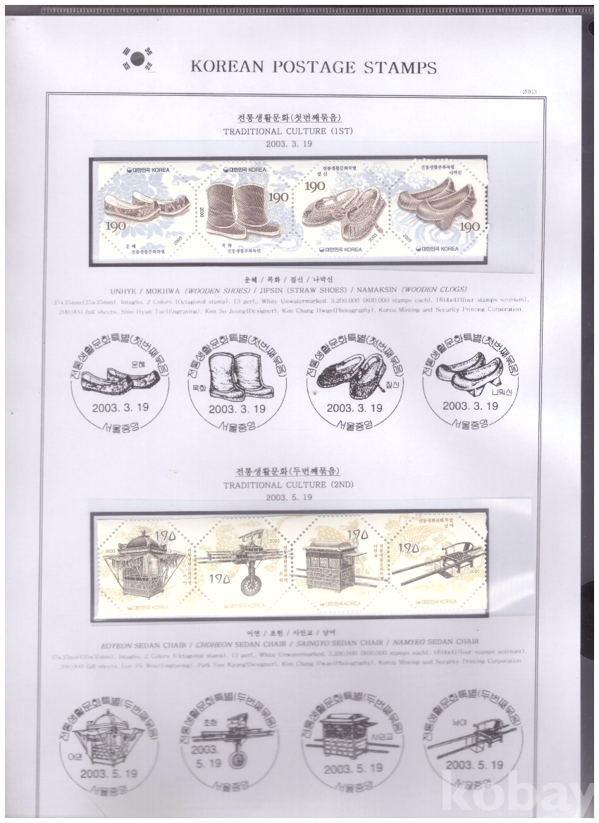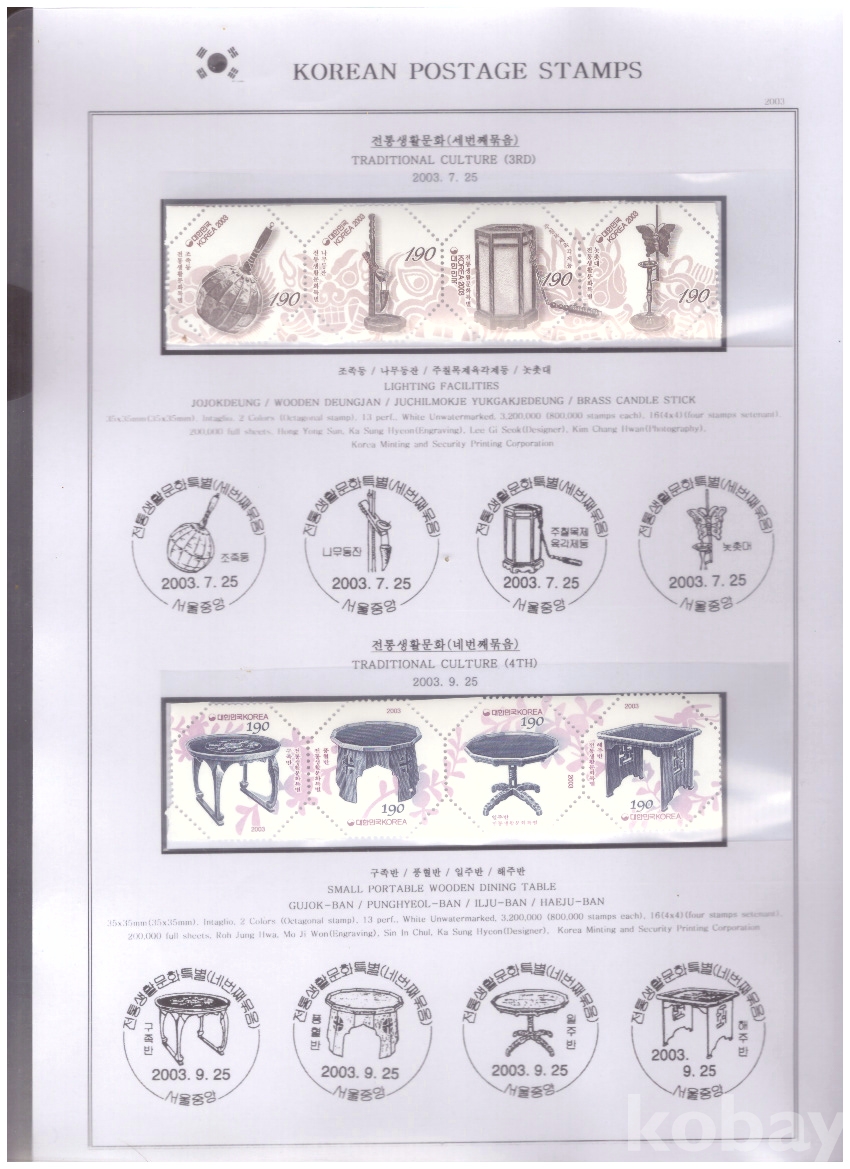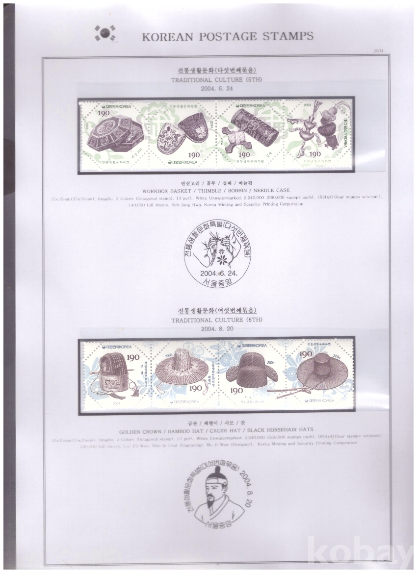 (시리즈우표) 2003-2004 전통생활문화 6 (4 strips) (24 완) MNH