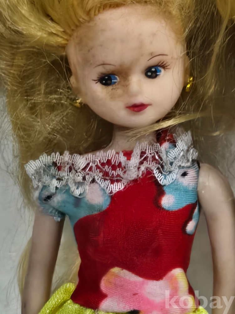 크기 == 30CM 인형 -== 97 MIMI WORLD MADE IN KOREA =등 뒤에 금처럼 있는것은 머리카락의 사진 입니다.