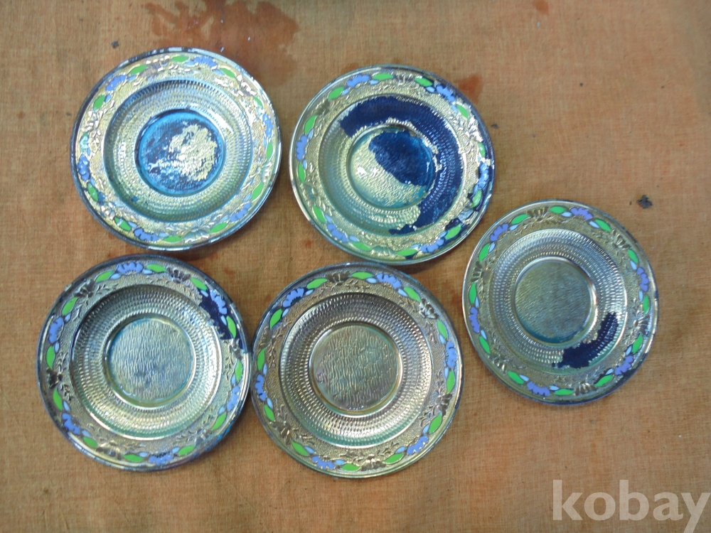 엔틱장식품 ㅡ410ㅡ금속재질받침대차탁오개