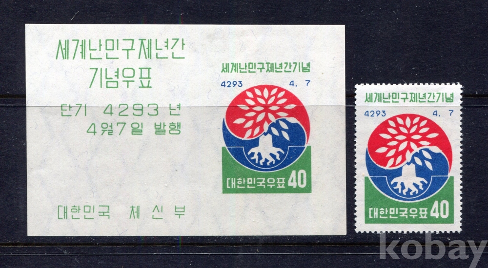 - [시트/우표] 1960년 미사용 세계난민구제 (All MNH : Mint Not Hinged : 뒷면 힌지자국없이 깨끗한 상태))
