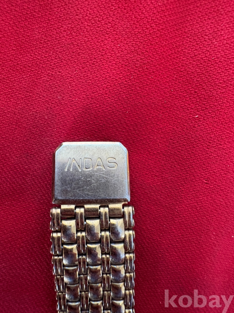 INDAS 쿼츠 손목시계 입니다. 상태는 보시는것 처럼 기스가 있습니다. 작동여부는 모르겠네요.