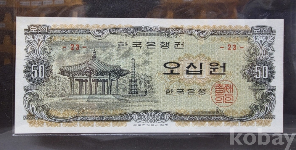 -대한민국 팔각정 오십원 판번호 23번 미사용 입니다..