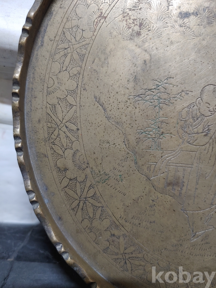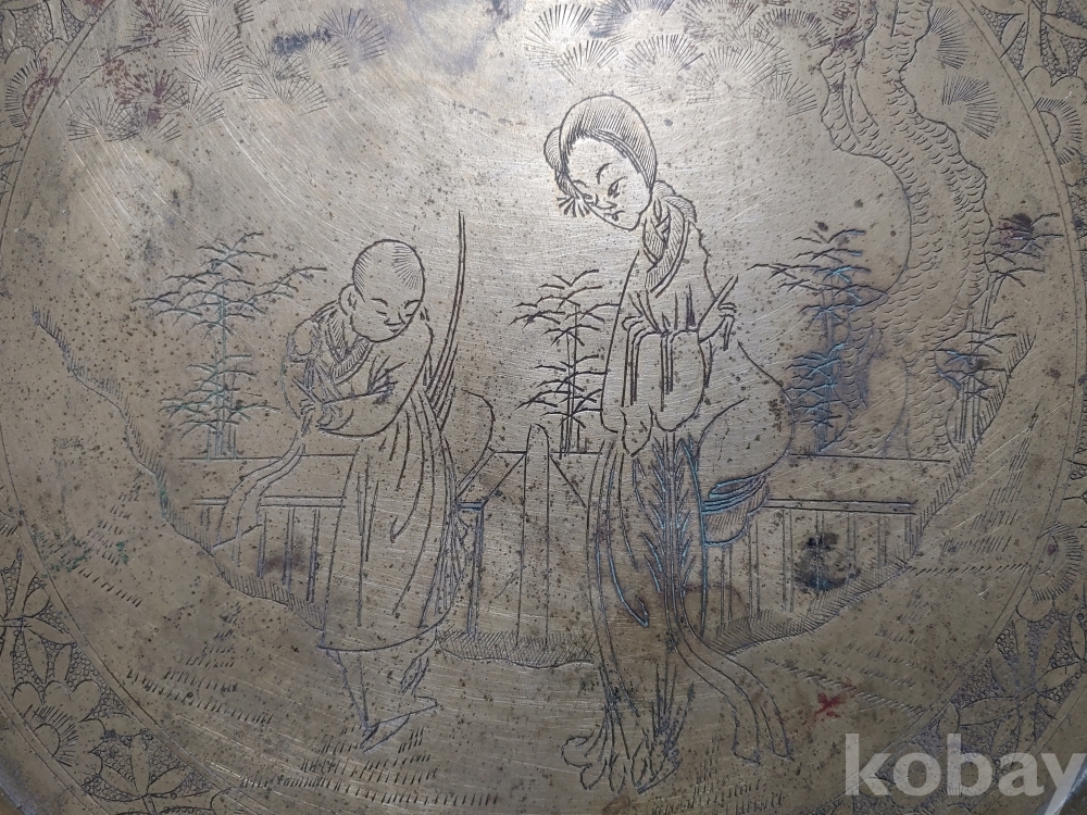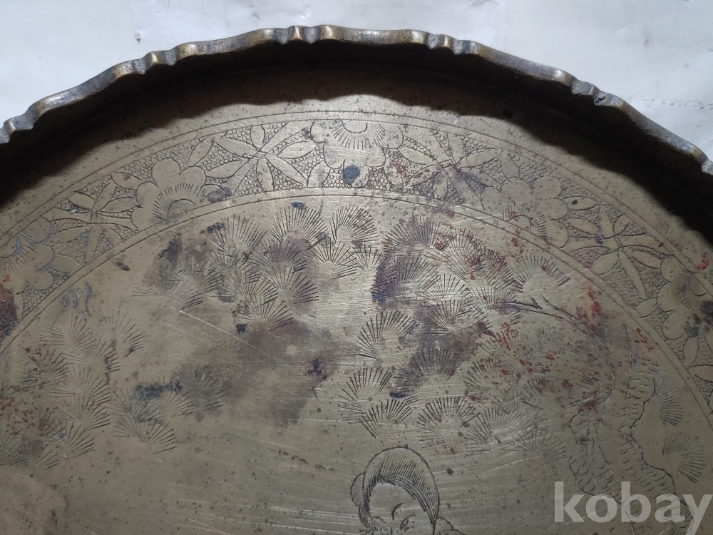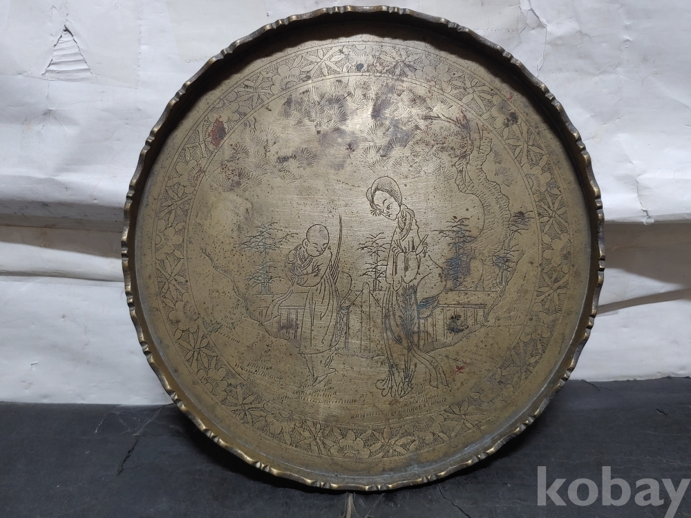 ""예쁜 꽃, 소나무 사람문양에 쪼인이 있는 놋쇠 쟁반"" 1번