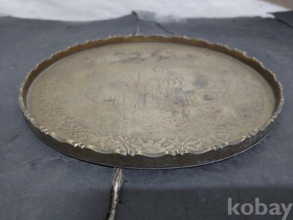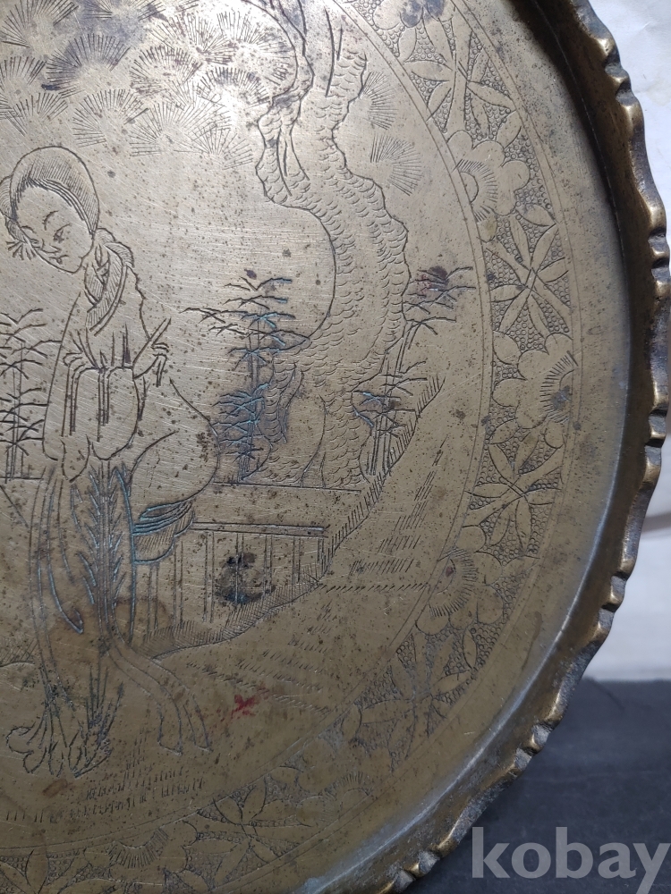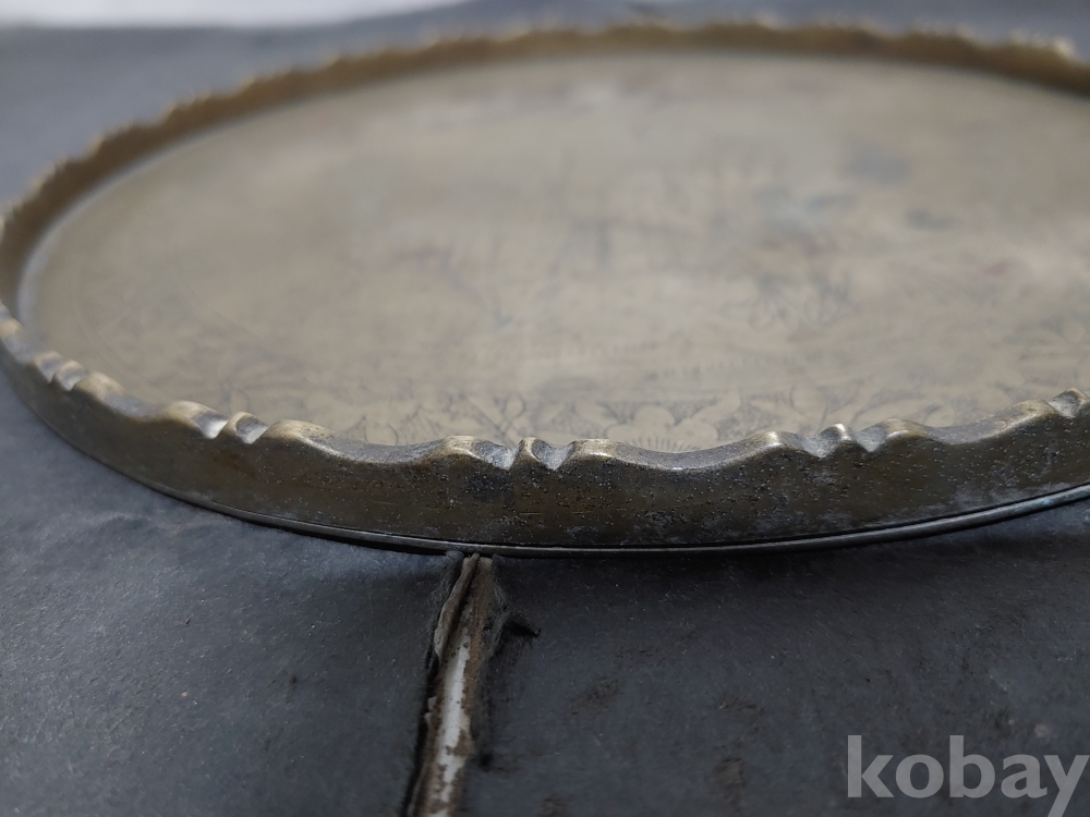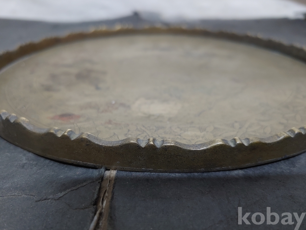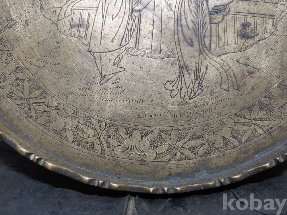 ""예쁜 꽃, 소나무 사람문양에 쪼인이 있는 놋쇠 쟁반"" 1번