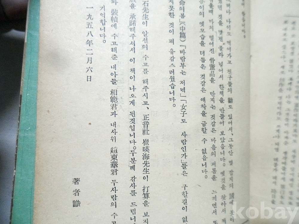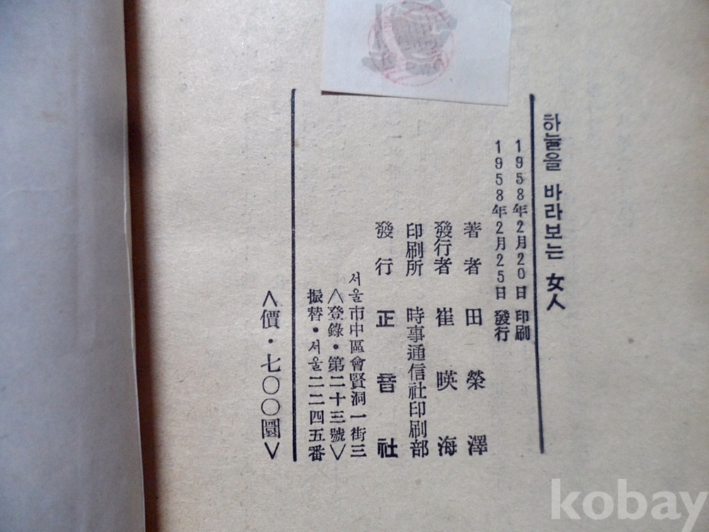 1958년 하늘을 바라보는 여인~전영택 정음사 초판